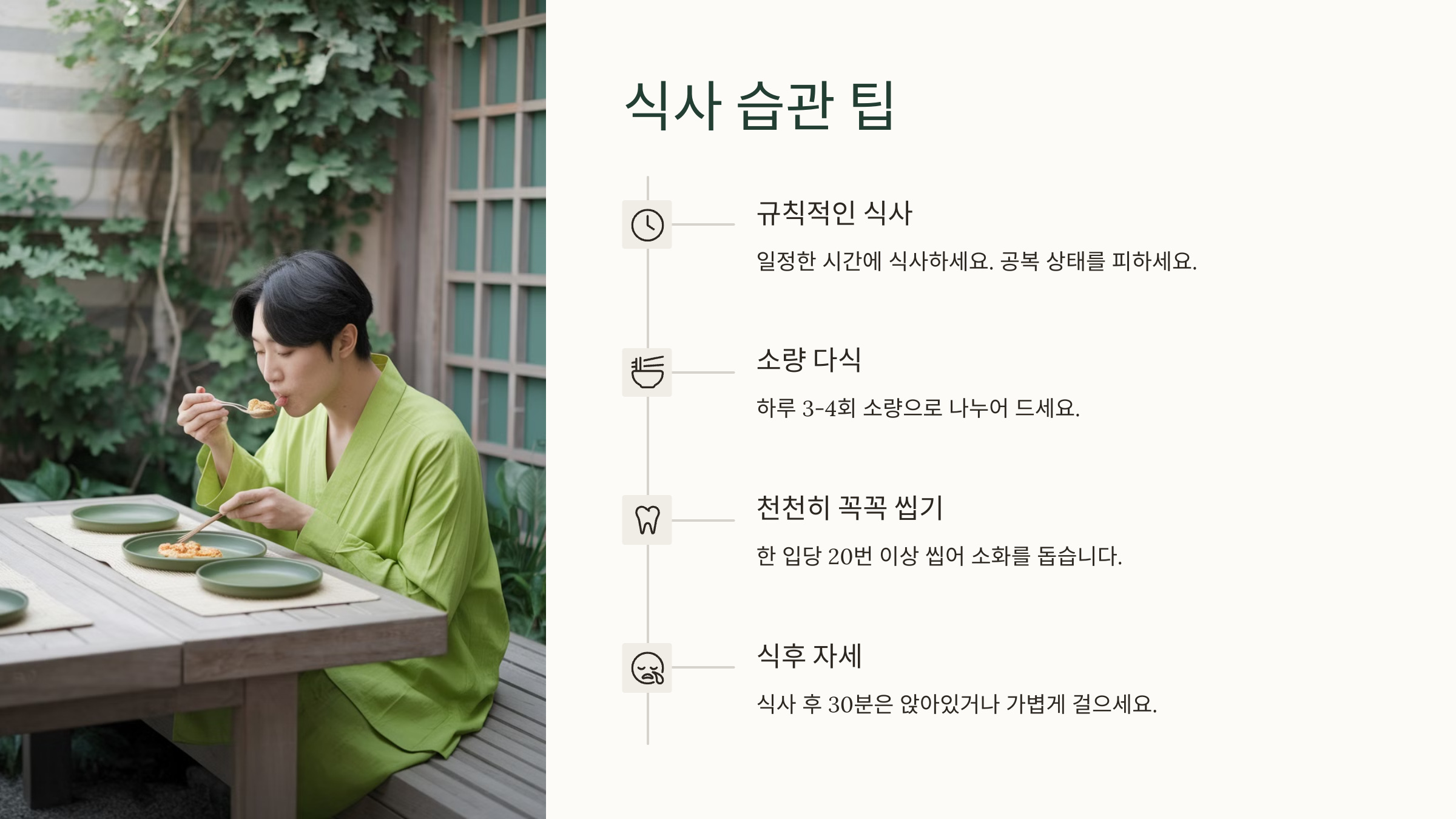 음식 자체도 중요하지만, 어떻게 먹느냐도 정말 중요해요. 위염이 있는 사람은 음식을 꼭꼭 씹어 먹는 습관을 들이는 게 좋아요. 침 속의 아밀라아제가 소화를 도와 위 부담을 줄여주거든요.