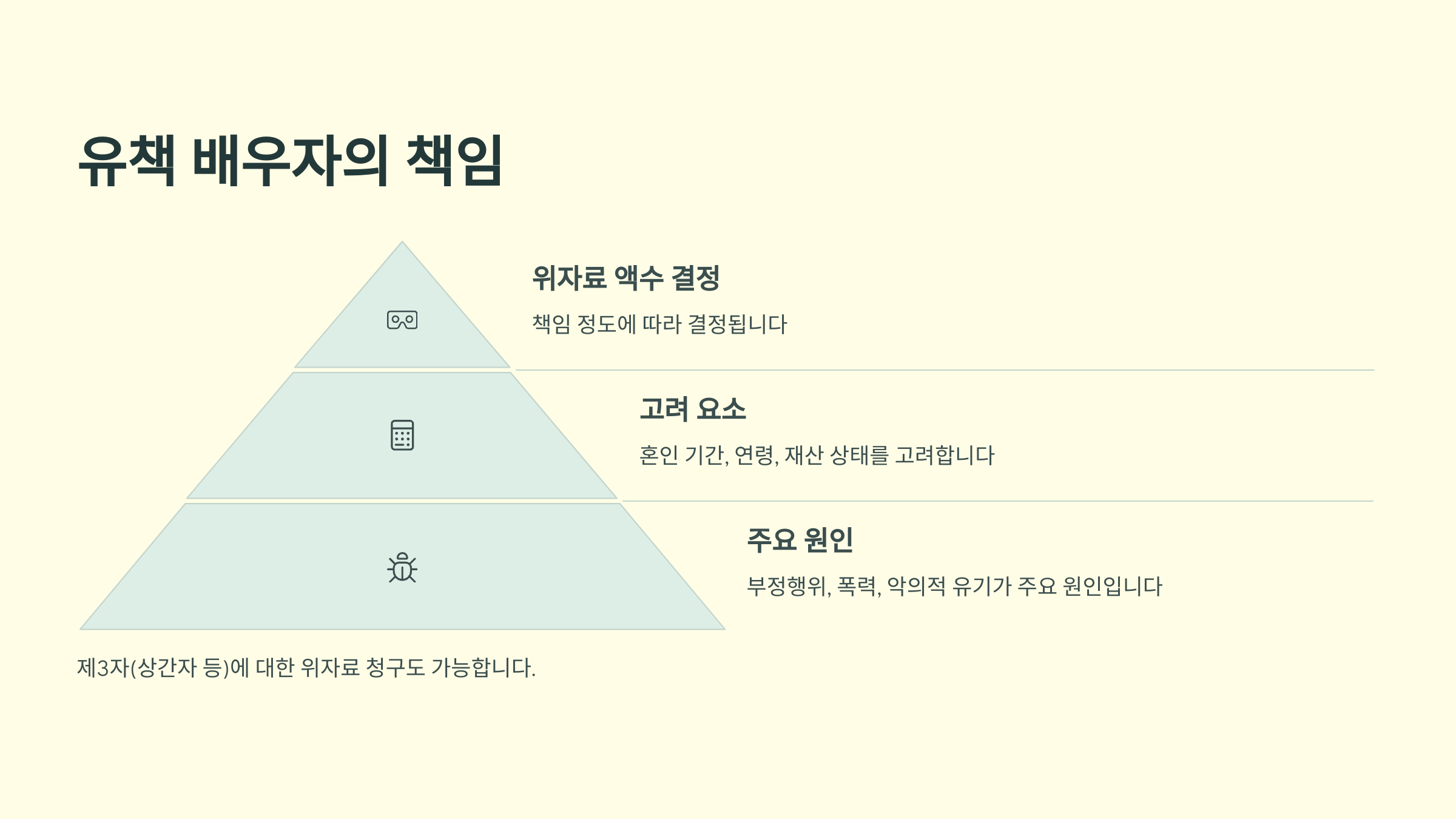 이혼 소송에서 ‘누가 잘못했는가’를 따지는 건 위자료와 관련된 부분이에요. 즉, 유책 배우자가 있다면 위자료 책임이 발생해요.