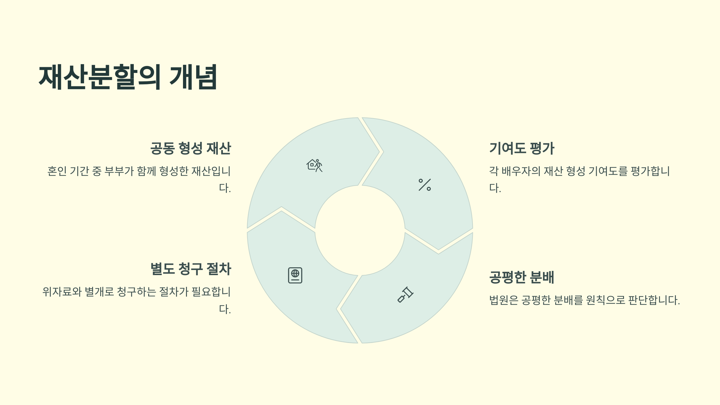 재산분할은 혼인 기간 동안 부부가 함께 형성한 재산을 나누는 거예요. 여기서 중요한 건 ‘누가 잘못했는가’는 중요하지 않다는 점이에요.