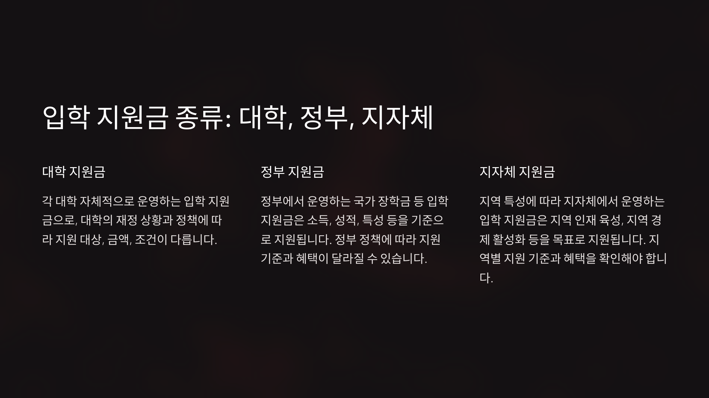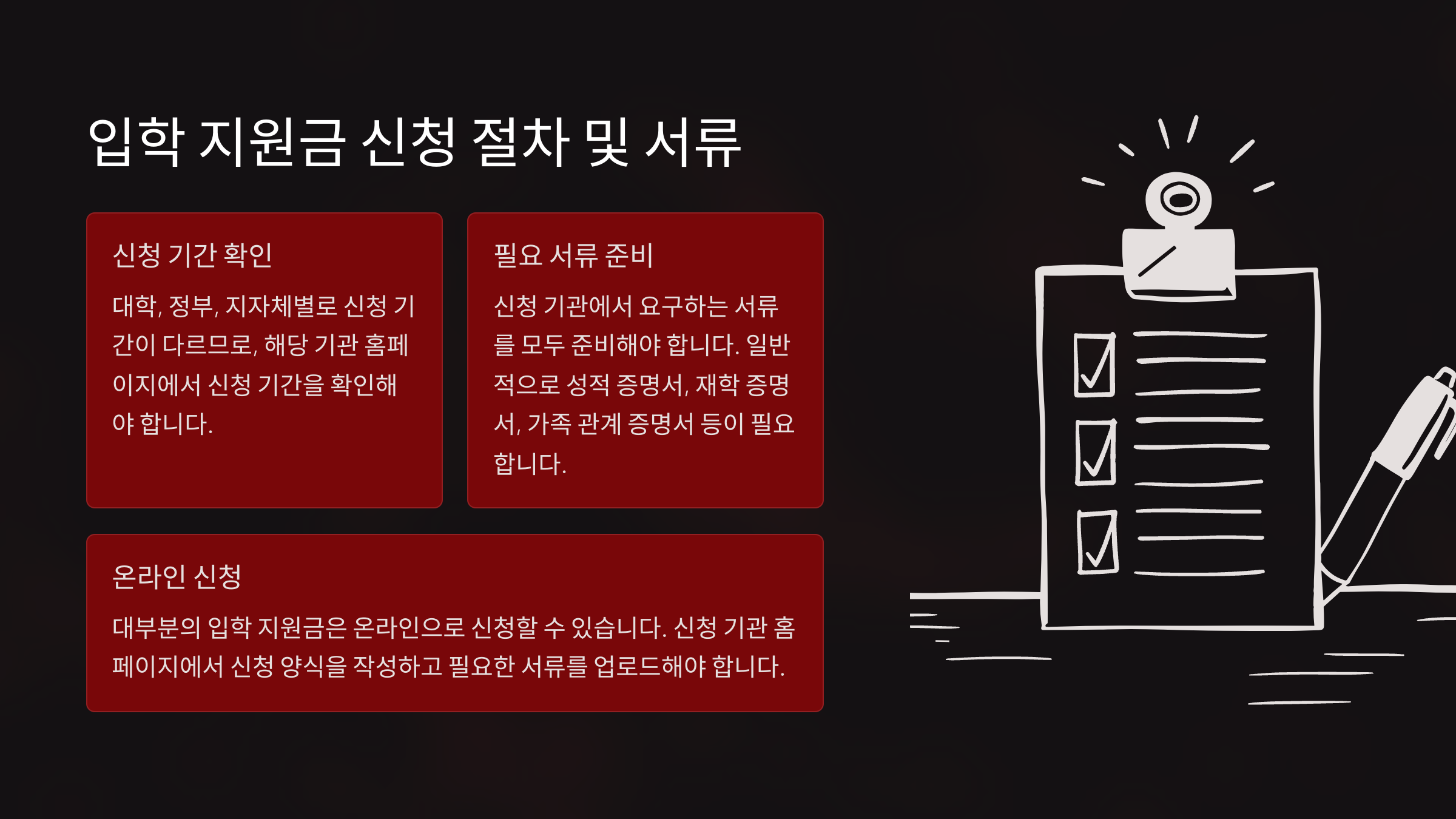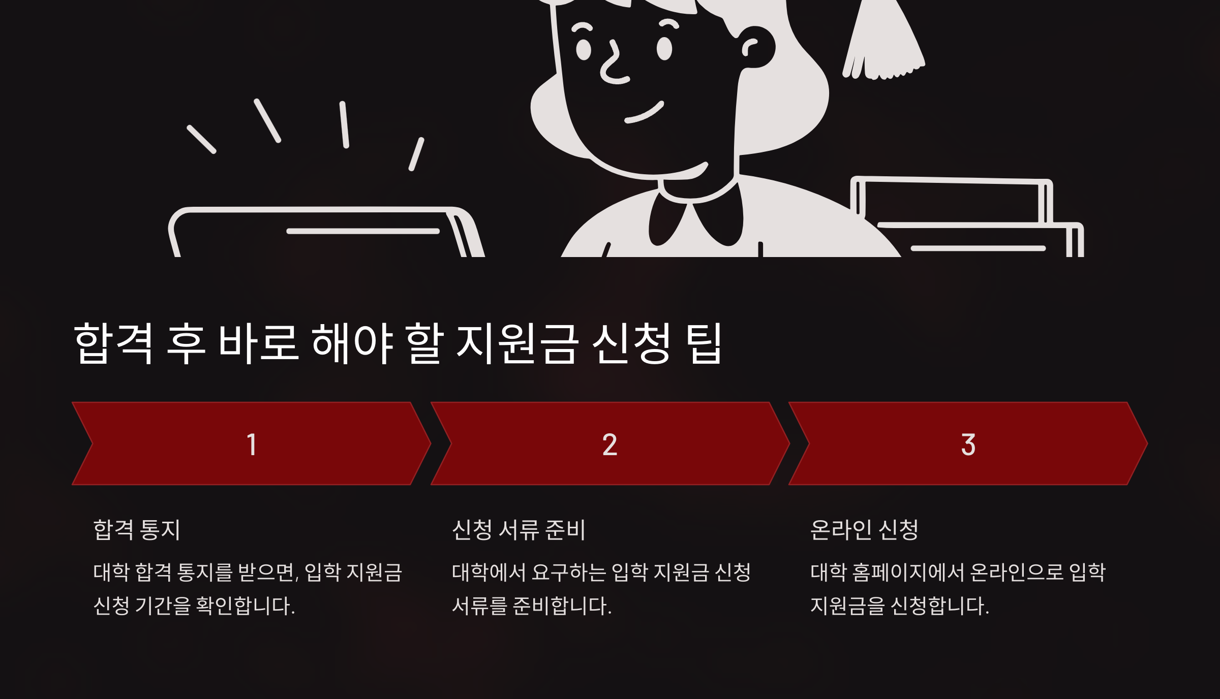- 입학 확정 후 즉시 신청: 대학, 정부, 지자체 지원금을 한 번에 확인