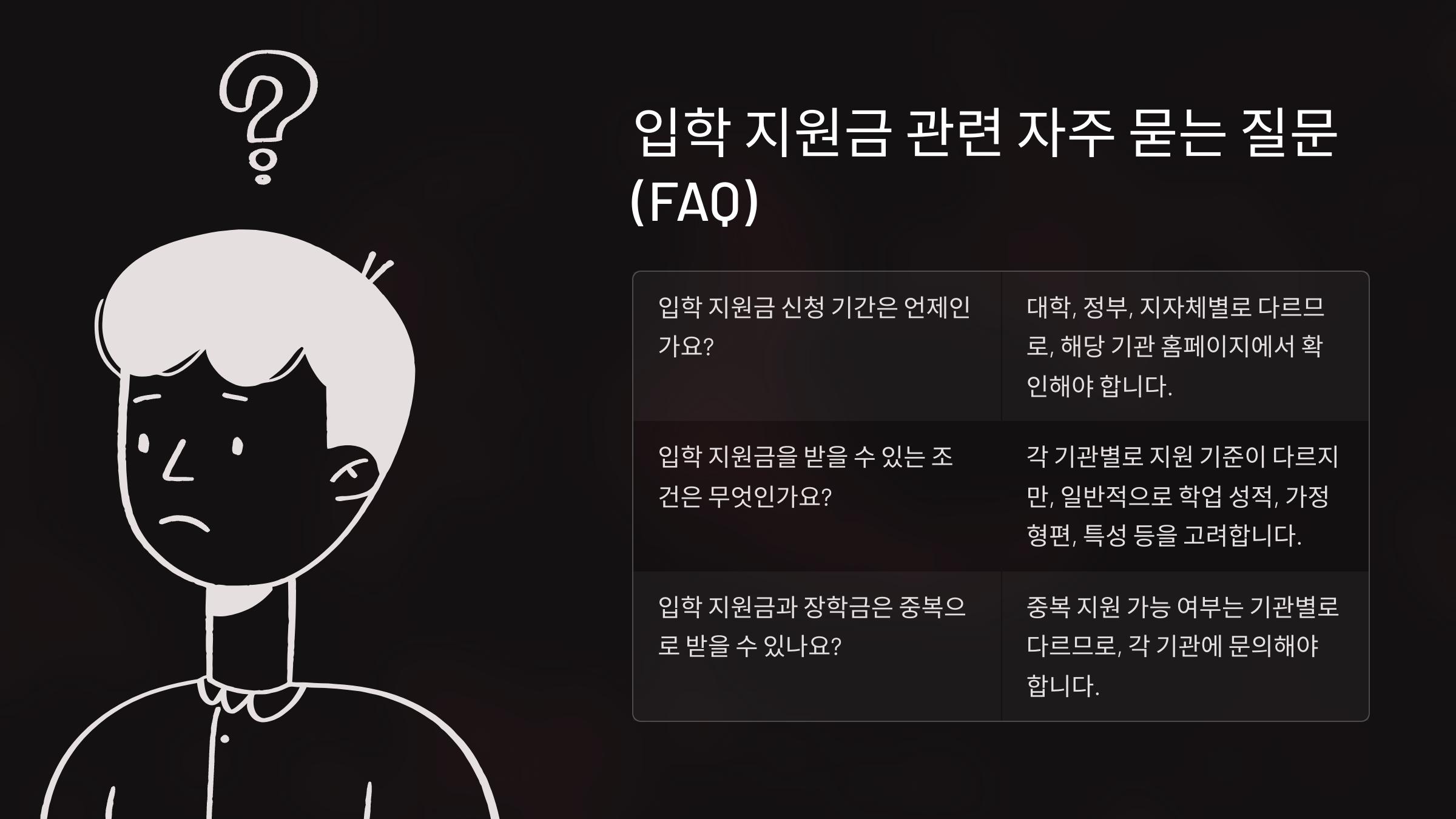 이제 입학지원금에 대한 궁금증을 해결하기 위해 자주 묻는 질문(FAQ)을 정리해볼게요!