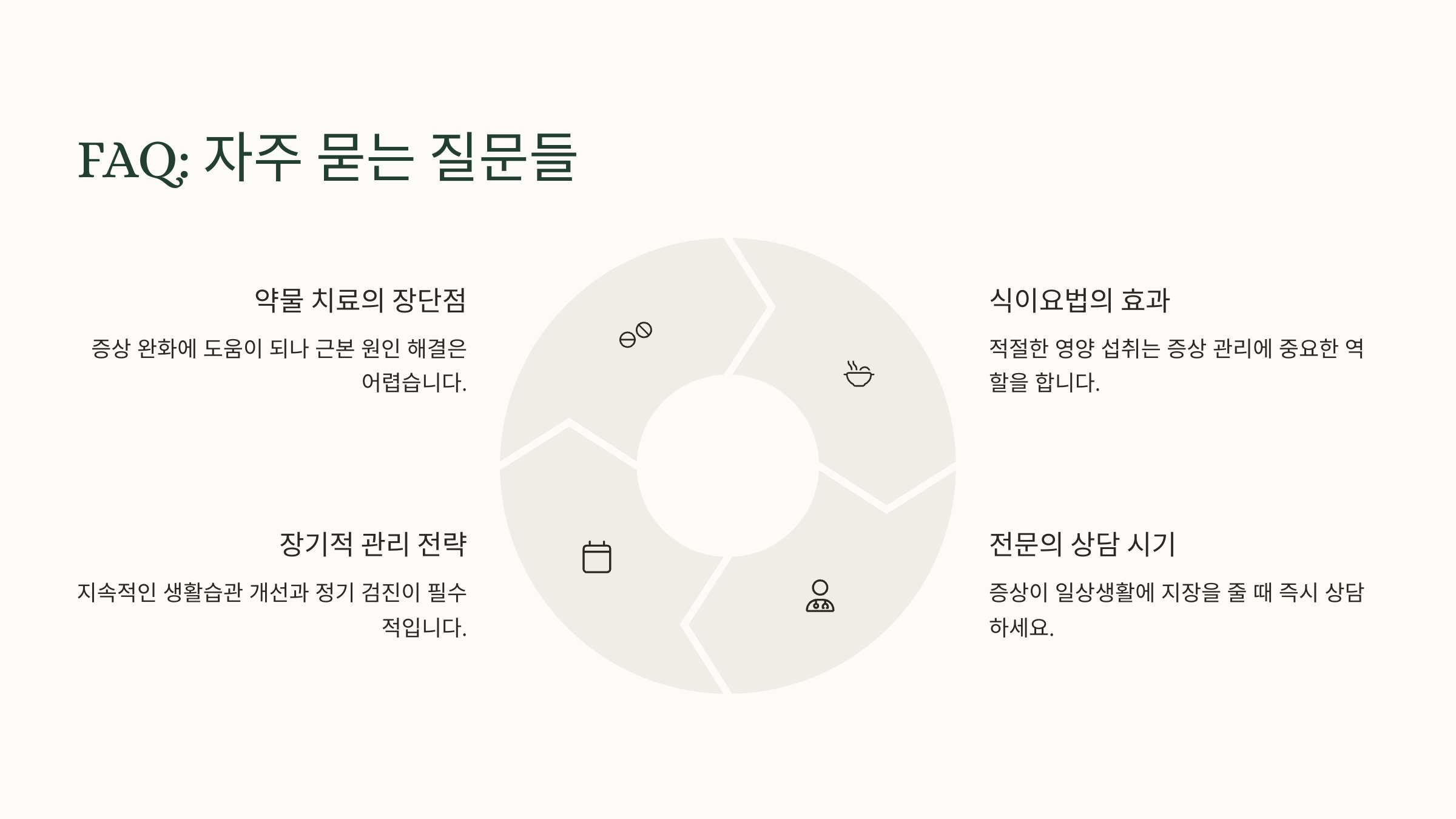 A7. 습관 개선을 통해 증상을 완전히 회복할 수 있어요. 빠르진 않지만 꾸준한 관리가 핵심이에요!