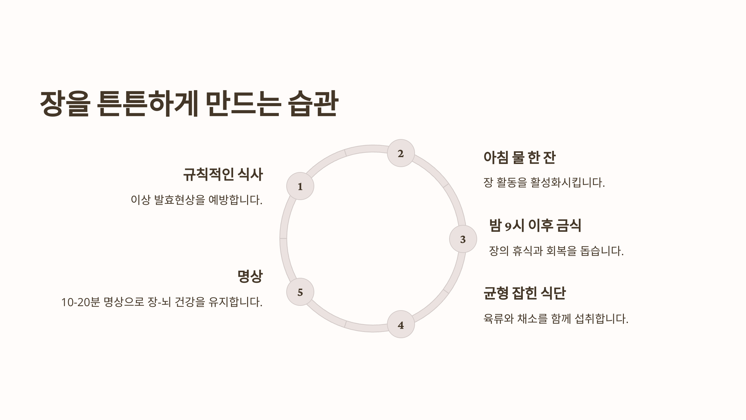- 📅 **정해진 시간에 화장실 가기** – 장 리듬을 맞춰주는 데 도움돼요.