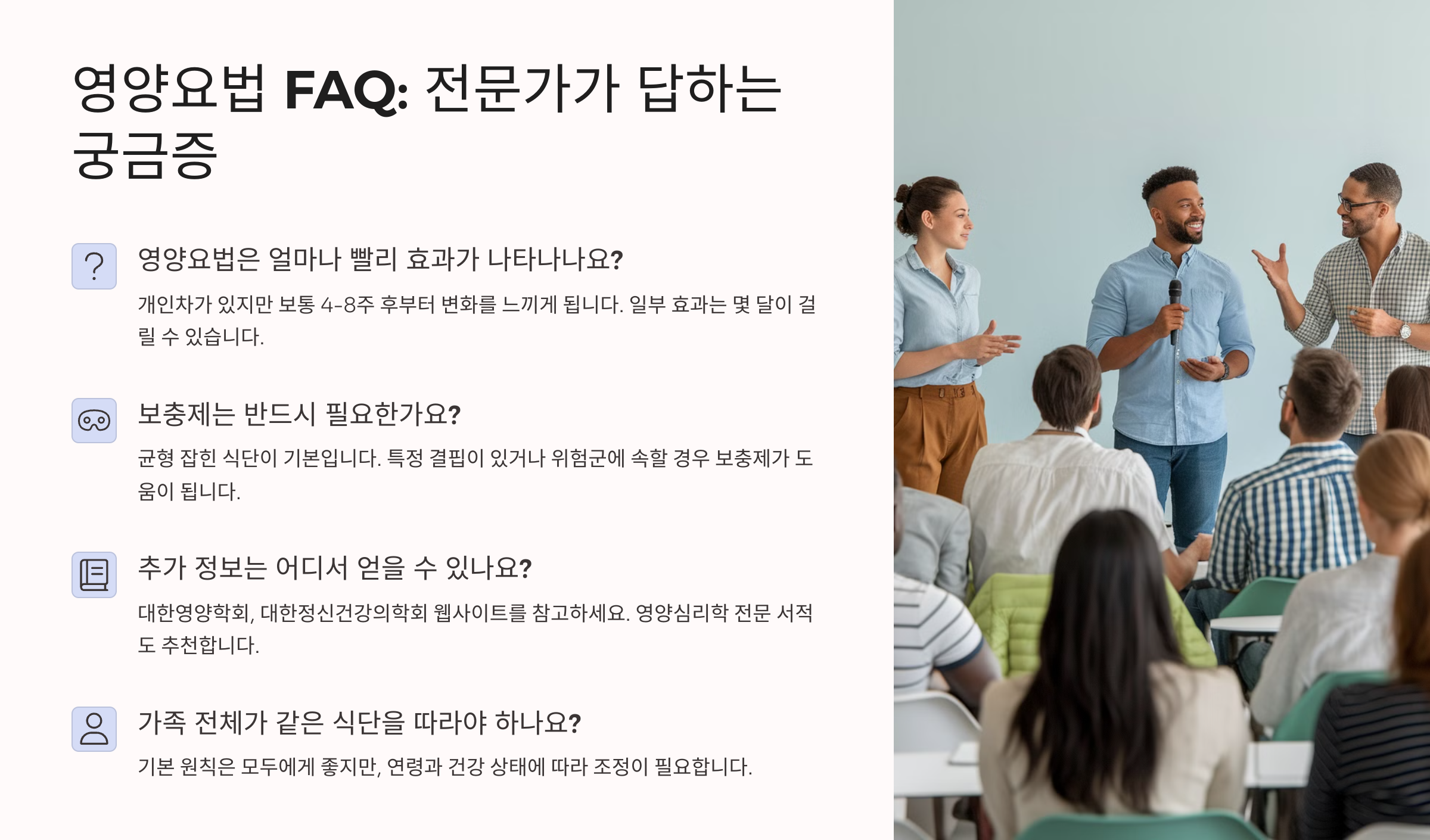 영양요법은 단기적으로만 해서는 효과를 보기 어려워요. 최소 4주 이상 꾸준히 섭취하고, 식사와 수면, 운동 습관까지 함께 조절해야 진짜 효과를 볼 수 있어요. 특히 영양소는 흡수와 축적, 작용까지 시간이 필요하니까 인내심도 중요해요!