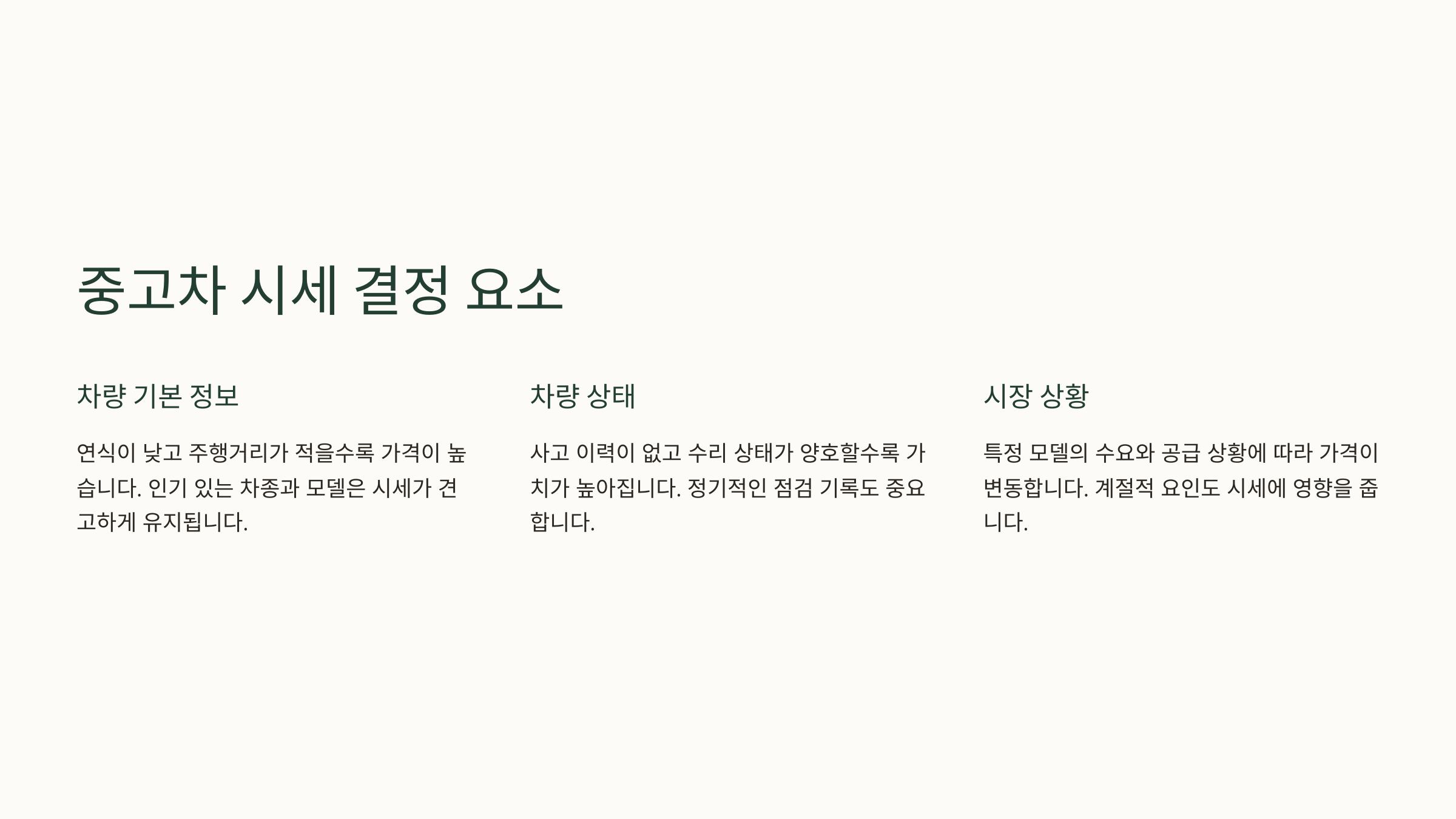 중고차 가격은 단순히 연식이나 브랜드만으로 결정되지 않아요. 🚗💰 여러 가지 요인이 복합적으로 작용해요!