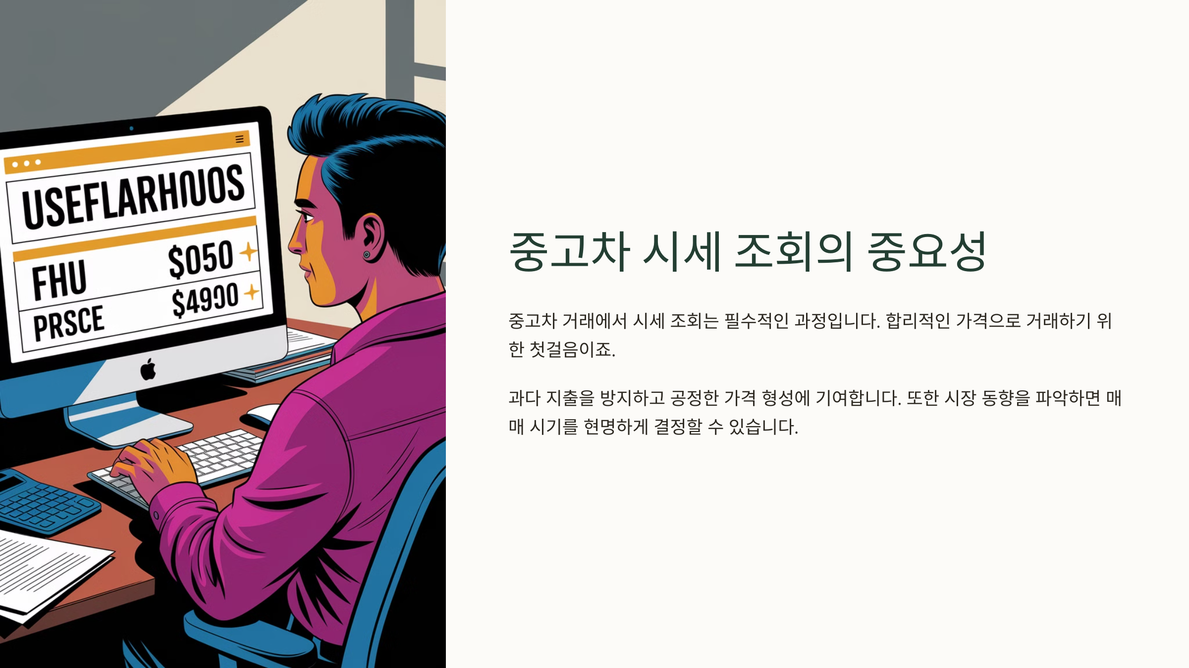 중고차를 구매하거나 판매할 때 가장 중요한 것이 바로 시세 조회예요. 🚗💰 시세를 모르면 터무니없이 비싸게 사거나, 싸게 팔아 손해 볼 수도 있어요.