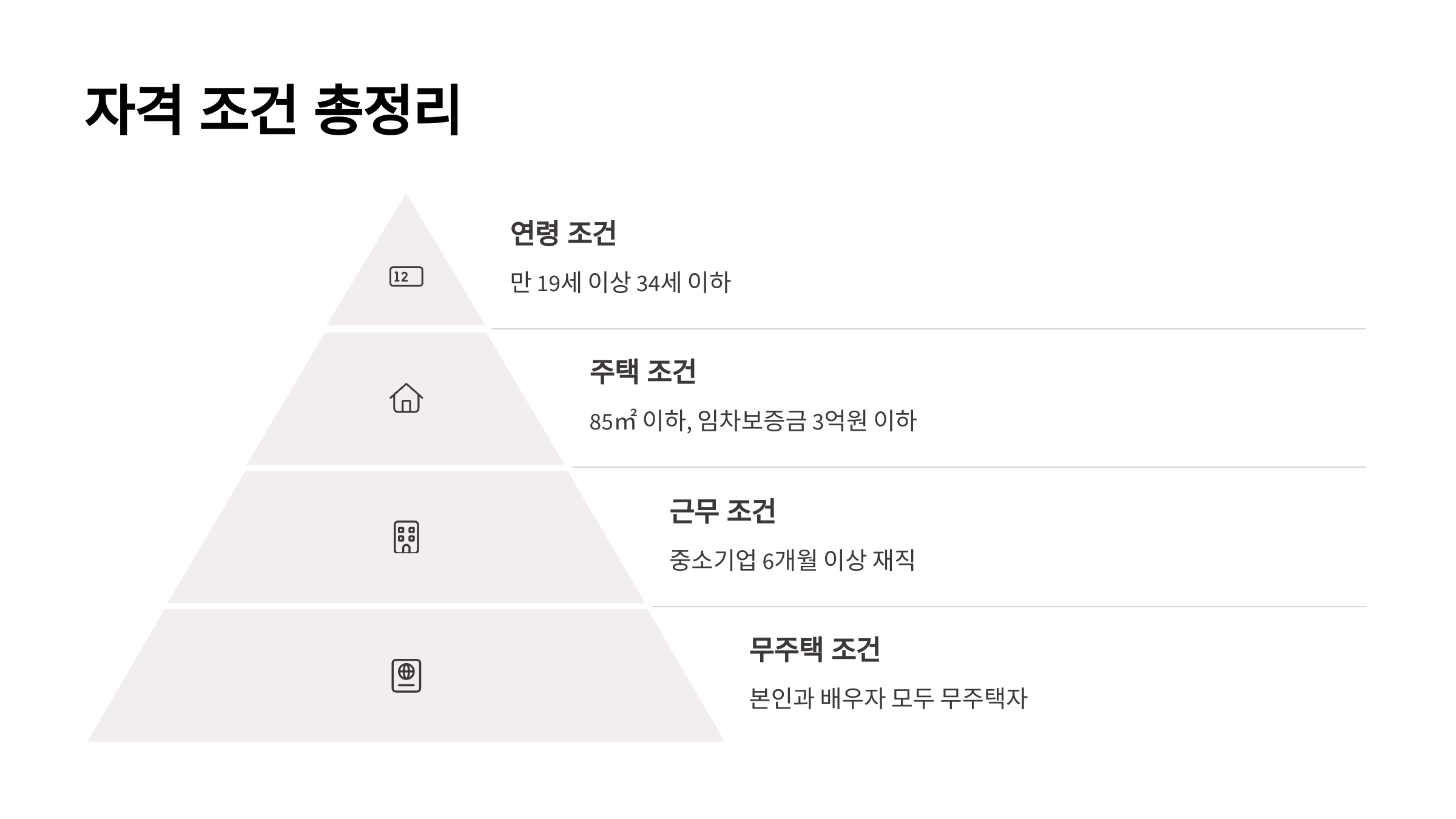 중소기업 청년 전세대출은 만 19세 이상~34세 이하 청년 중 중소·중견기업에 재직 중인 무주택자에게 제공돼요. 여기서 중요한 포인트는 '중소기업 재직'과 '무주택'이에요.