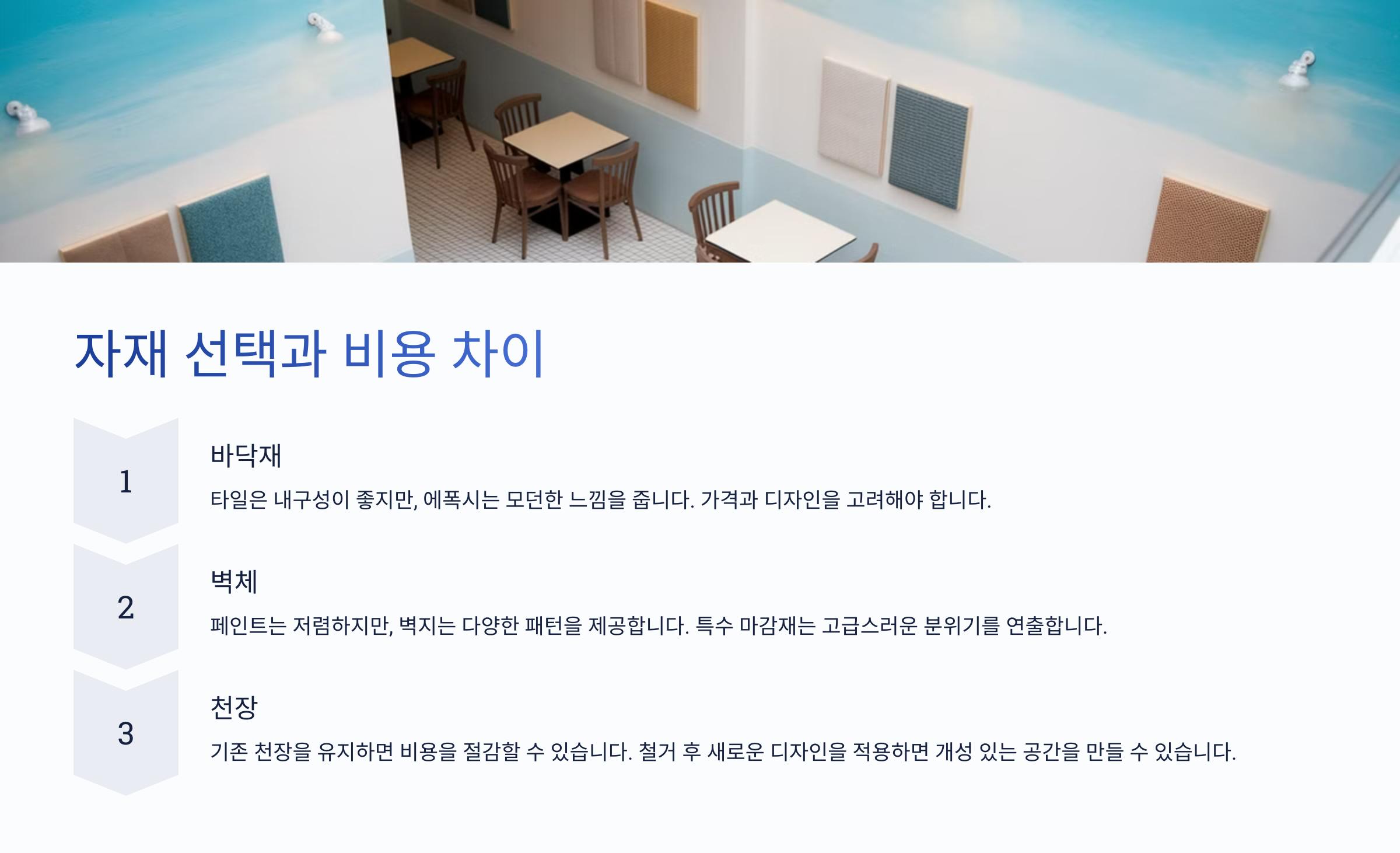 특히 요즘은 친환경 자재를 선호하는 분들도 많아서, 자연 소재를 사용하는 경우도 많아요. 물론 이런 자재는 일반 자재보다 가격이 조금 더 높지만, 카페 이미지에 큰 도움이 되기 때문에 고려해볼 만해요. 🌿