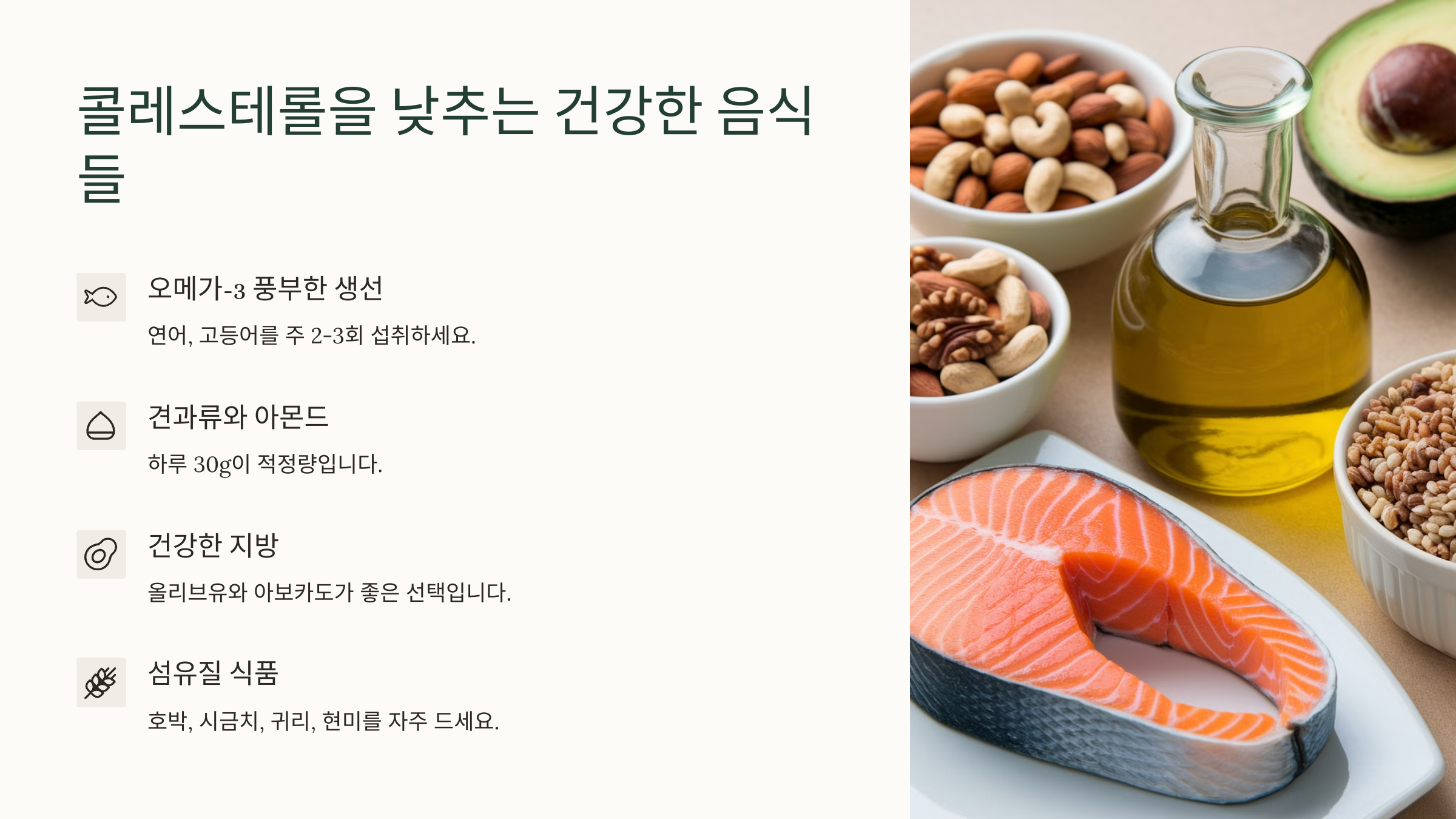 🥗 콜레스테롤 낮추는 대표 식품 표