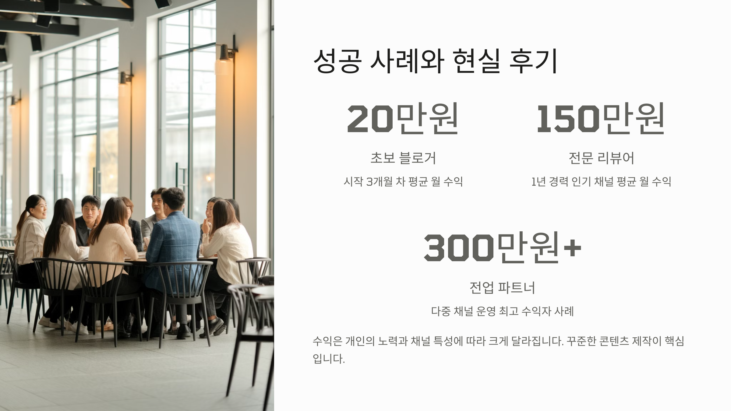 이제 수익이 어떻게 쌓이고, 언제 어떻게 정산되는지 확실히 알게 되었죠? 다음으로는 실제로 성공한 사람들의 이야기와 현실적인 후기들을 소개할게요! ✨
