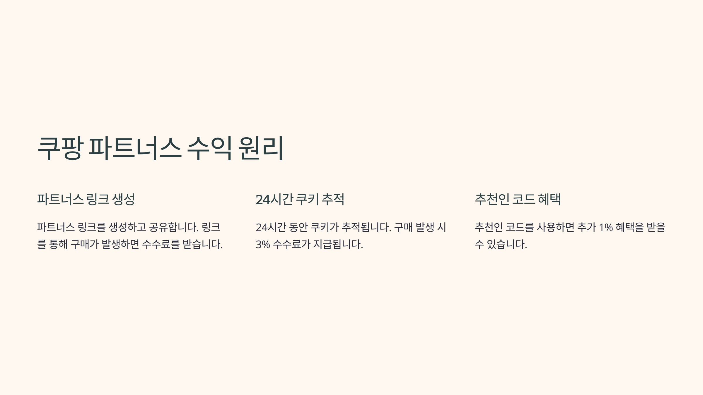 | 3. 링크 생성 | 쿠팡에서 제공하는 제휴 링크 활용 |