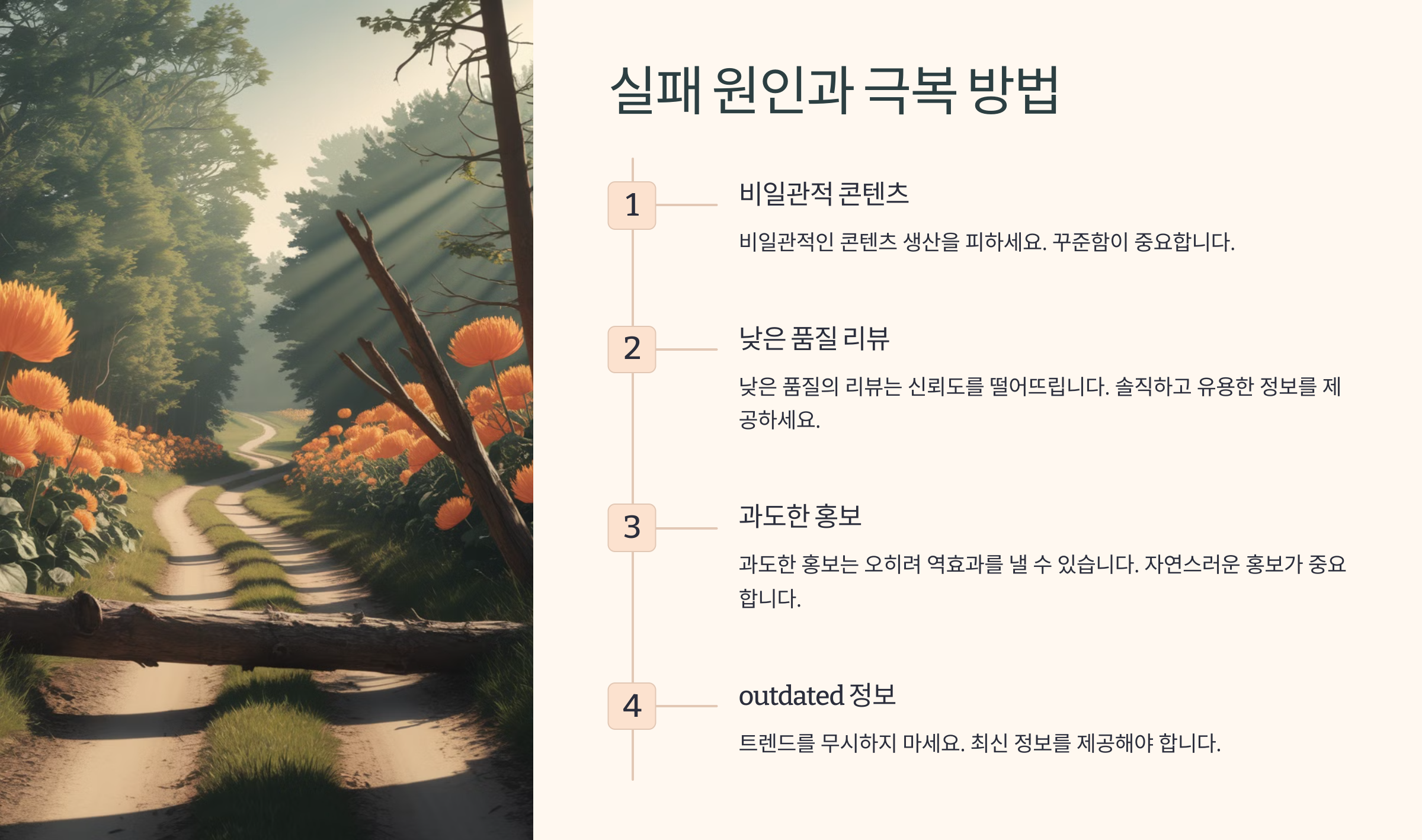 | 일관성 부족 | 꾸준한 포스팅과 업데이트 필요 |