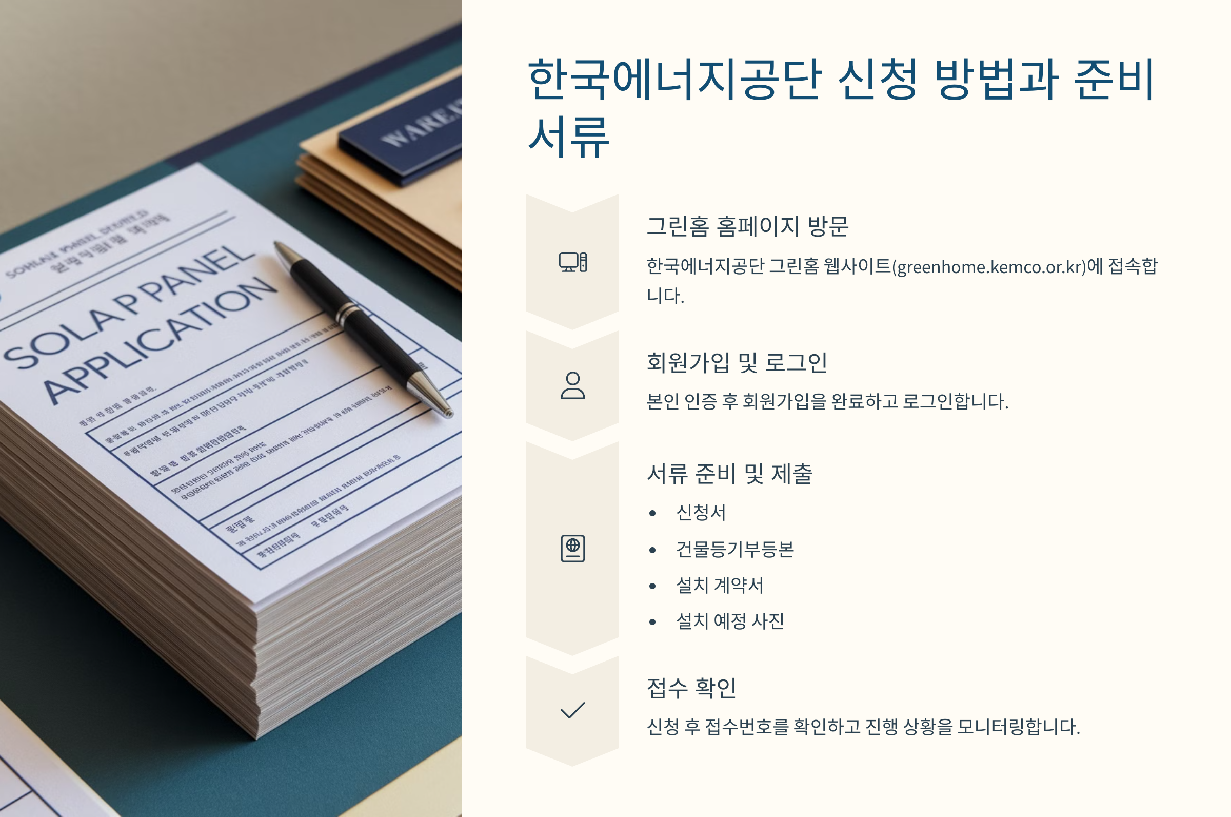 신청은 '그린홈 홈페이지' 또는 '에너지공단 신재생에너지 포털'에서 가능해요. 시공업체가 대행해주는 경우도 많지만, 본인이 직접 신청할 수도 있어요.