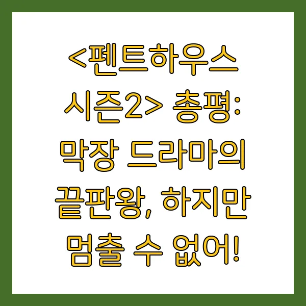 자, 이렇게 <펜트하우스 시즌2> 리뷰를 마무리해보았어요! 어떠셨나요? 다음에는 더욱 재미있는 콘텐츠로 돌아올게요!