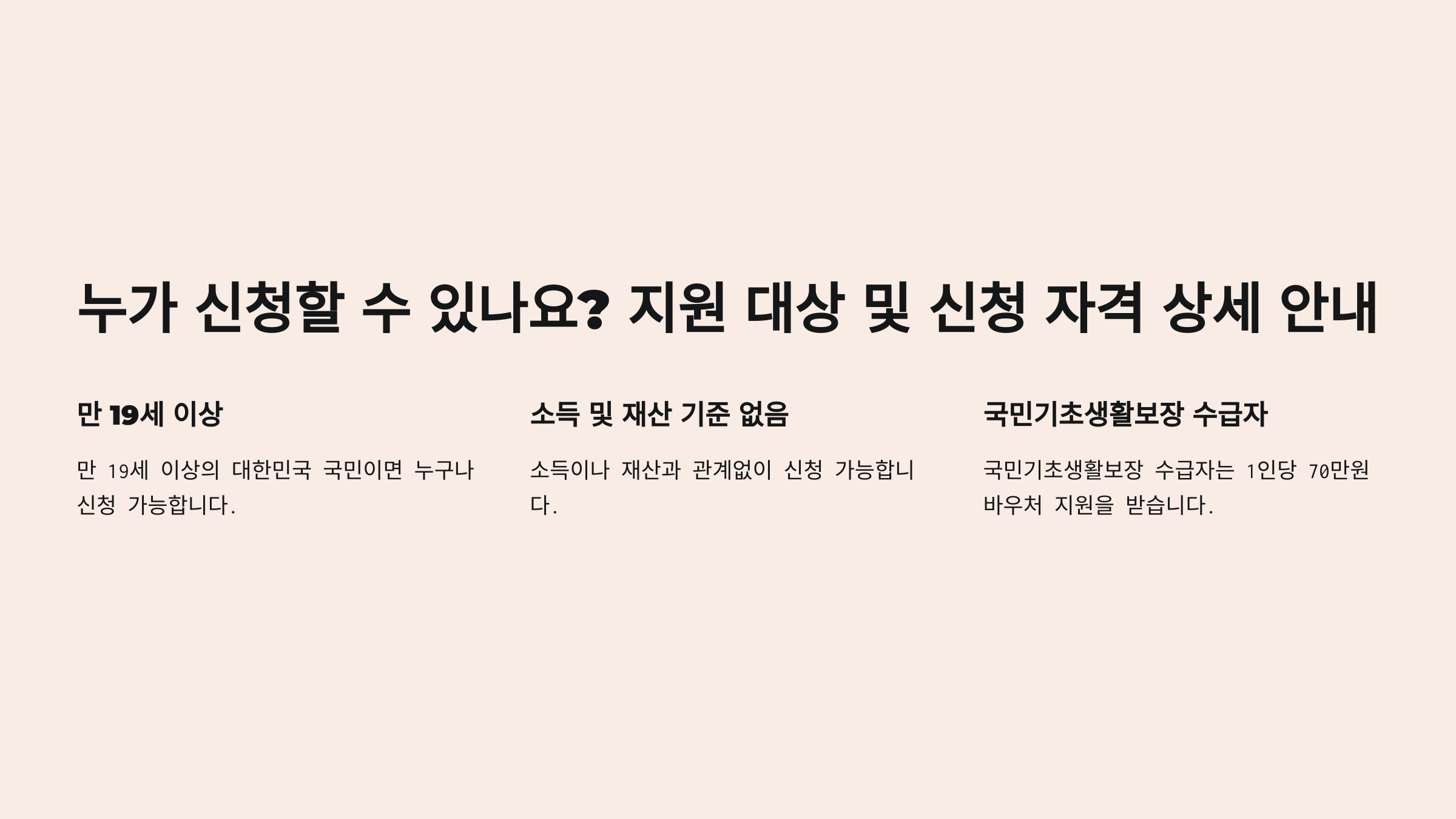 특히 저소득층 및 취약계층을 위한 지원이지만, 많은 사람이 신청 가능하다는 사실! 몰라서 신청을 안 하면 정말 손해예요. 신청 방법과 활용 꿀팁을 제대로 알면 35만 원 이상의 가치를 누릴 수 있답니다.