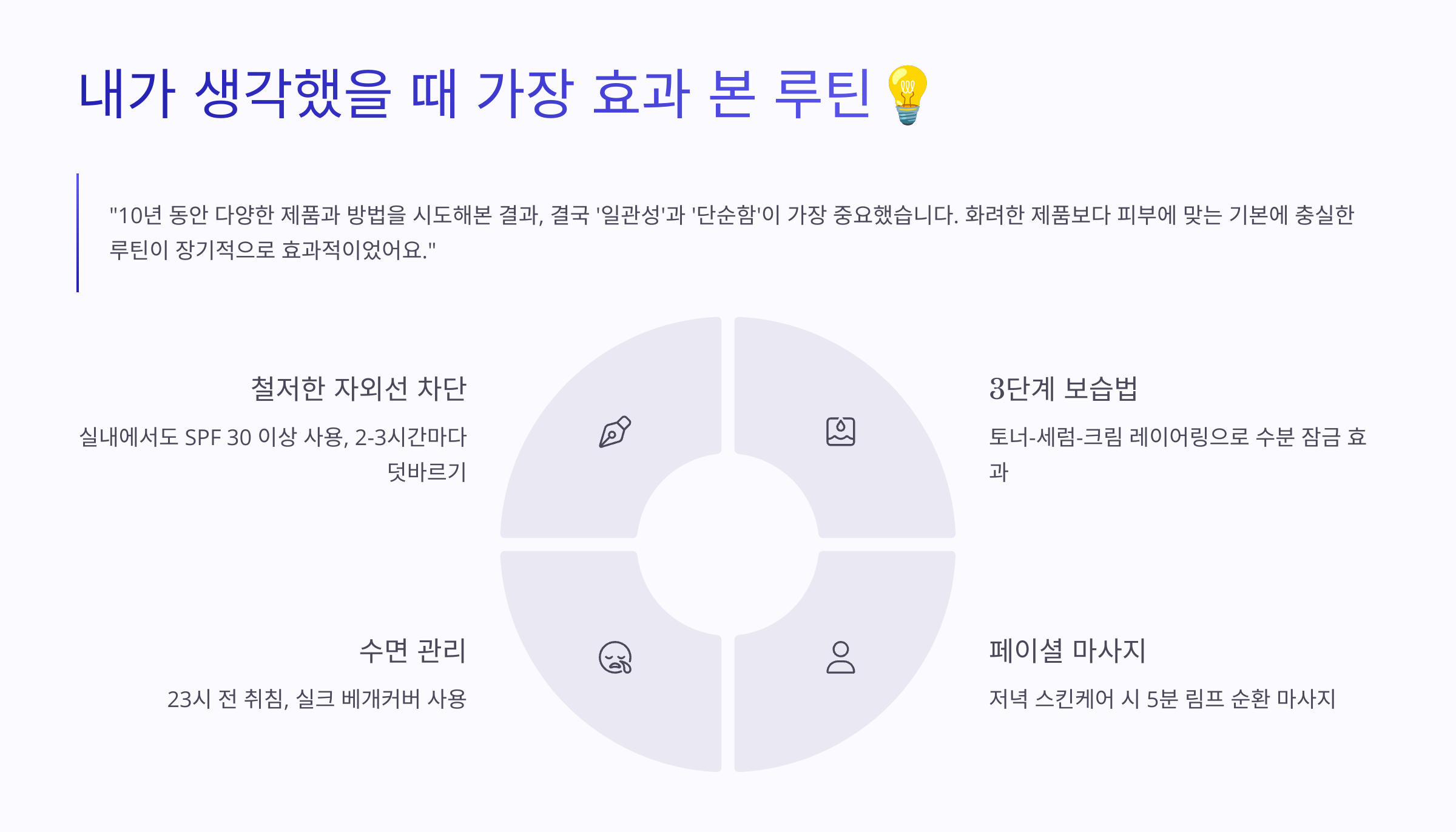 내가 실제로 피부가 눈에 띄게 좋아졌던 루틴을 솔직히 공유해볼게요. 수십 개 제품을 써보면서 느꼈던 진짜 효과 본 방법은 바로 '고정 루틴 + 최소한의 변화'였어요.