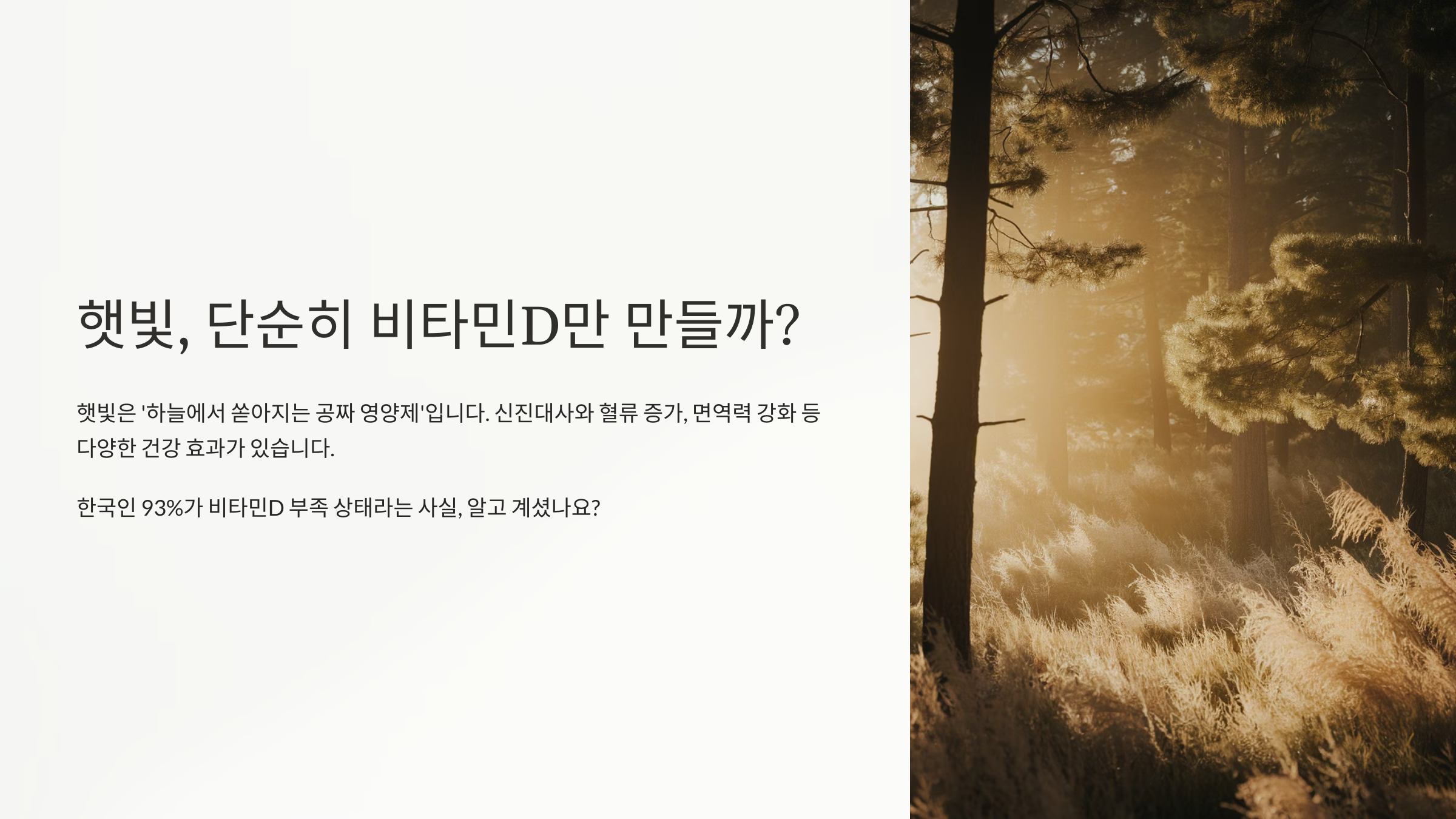 햇빛은 뼈 건강을 위한 비타민D 합성뿐 아니라, 뇌 건강, 면역력, 기분, 대사, 심지어 눈 건강까지 다양한 영역에 영향을 줘요. 내가 생각했을 때 많은 사람들이 자외선 차단에만 집중하다 보니, 햇빛이 주는 긍정적인 면을 너무 놓치고 있는 것 같아요. 지금부터 그 이유를 하나씩 알려줄게요! ☀️