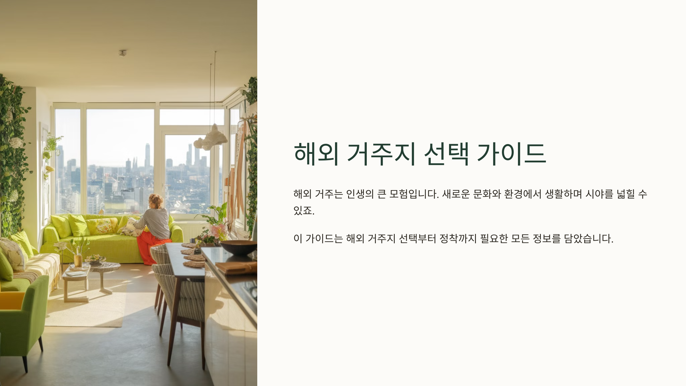 해외 취업에 성공했다면, 이제 가장 중요한 문제 중 하나가 '어디에서 살 것인가?'예요. 새로운 나라에서 안정적인 거주지를 찾는 것은 단순한 이사가 아니라, 삶의 질을 좌우하는 중요한 결정이에요. 👏