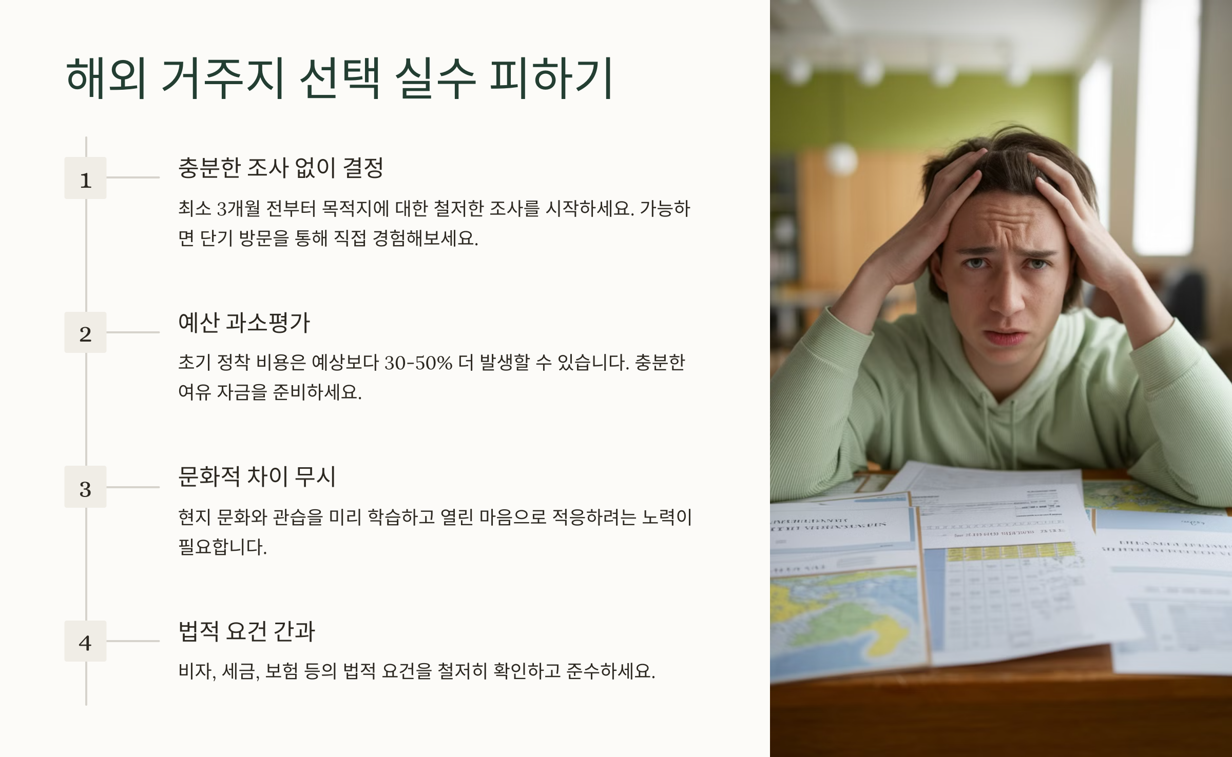 이제 해외 거주지를 선택할 때 피해야 할 대표적인 실수들을 알려줄게요! ✋