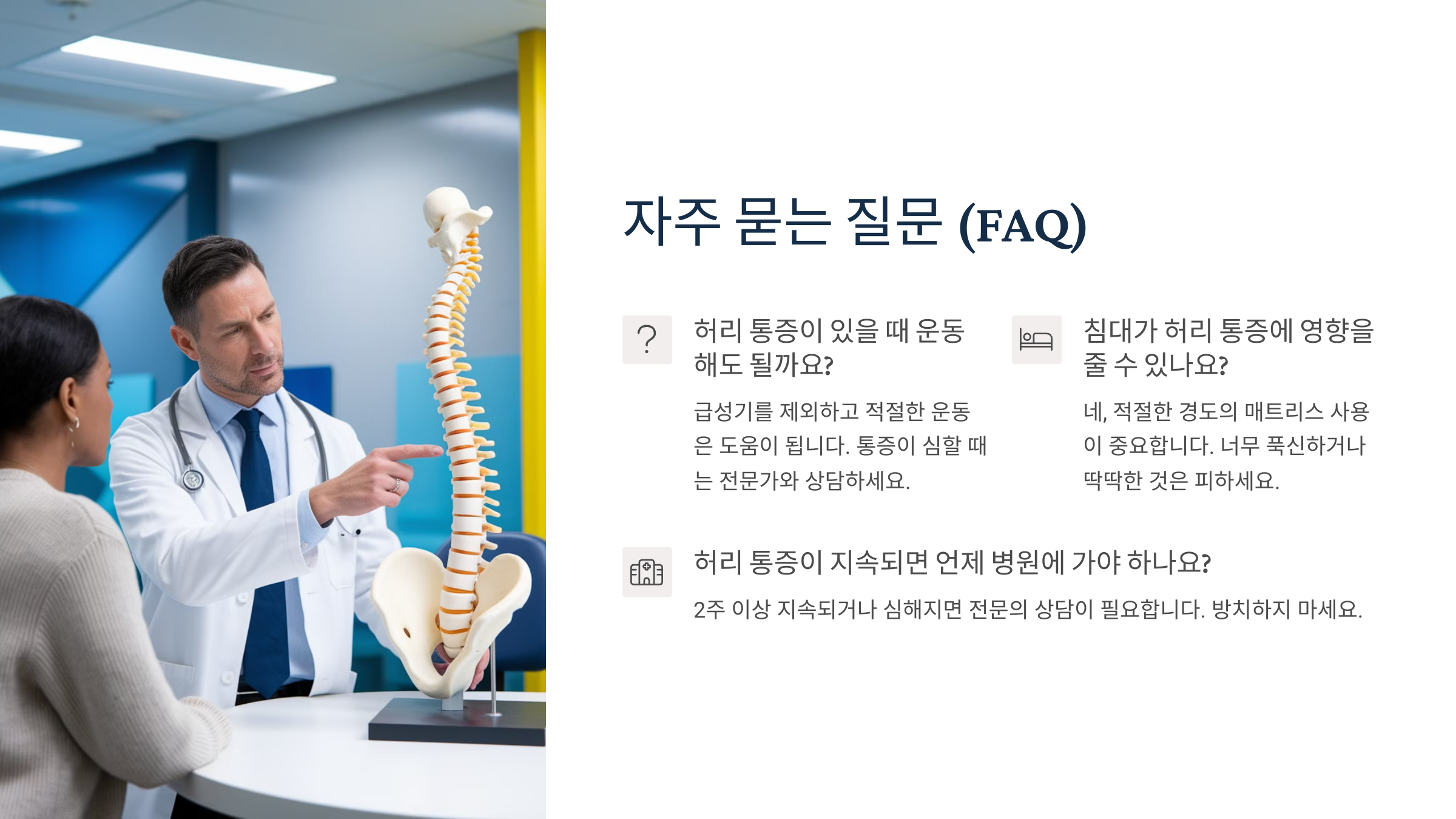 허리는 우리 몸의 중심 역할을 하기 때문에, 한 번 손상되면 일상생활 전체에 영향을 줄 수 있어요. 미리 알고 예방하는 게 가장 좋은 방법이랍니다.