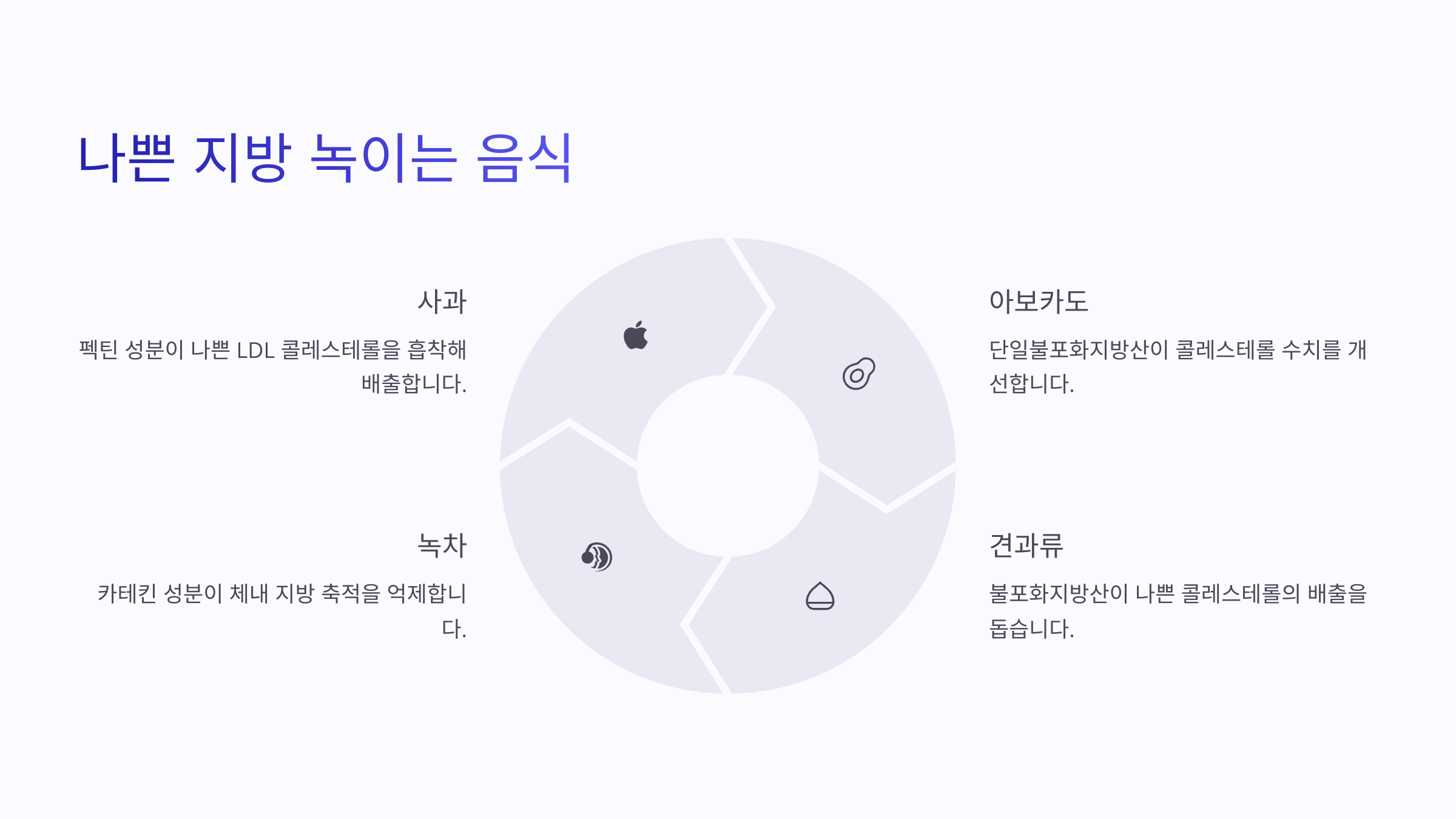 우리 몸속 나쁜 지방, 특히 LDL 콜레스테롤은 혈관을 막는 주범이에요. 이걸 녹여주고 배출까지 도와주는 음식들이 있어요.