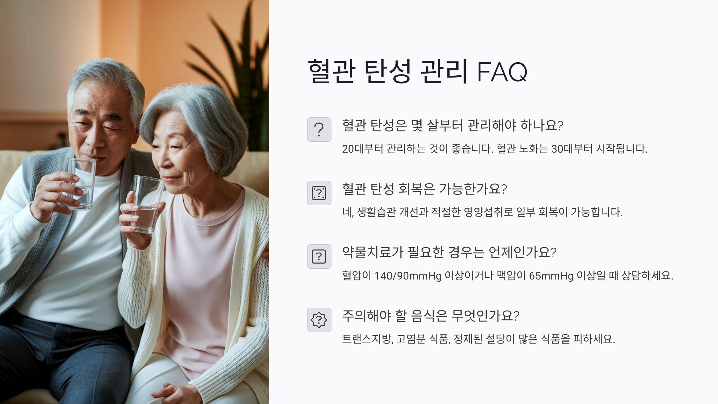 A8. 아니요! 관리만 잘하면 60대도 40대 혈관을 유지할 수 있어요.
