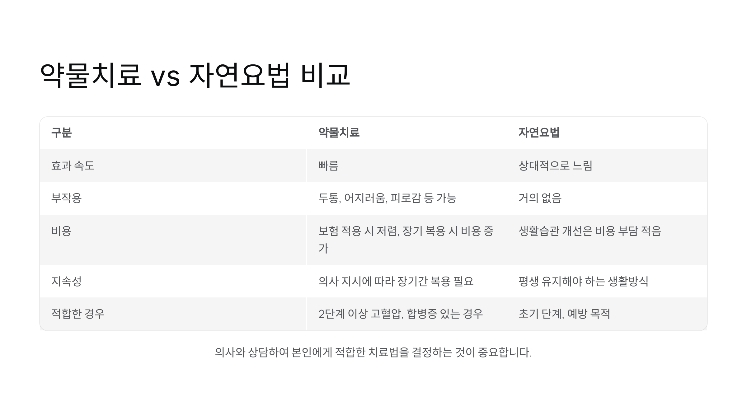 📊 약물치료 vs 자연요법 비교표
