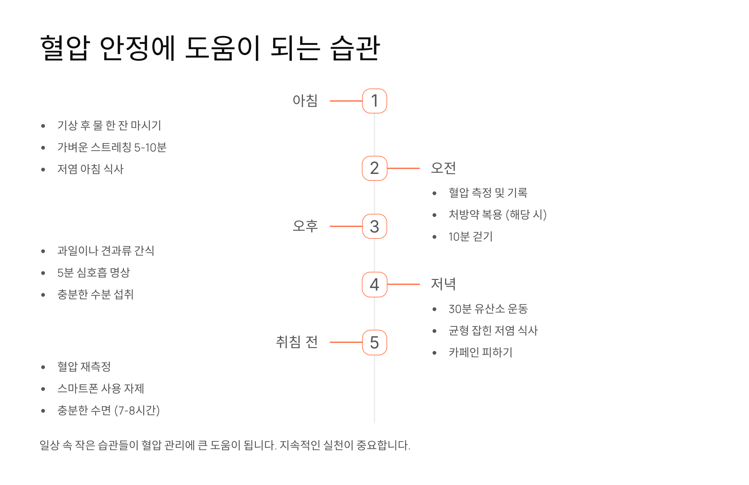 혈압 관리는 거창한 프로그램이 아니라, 오늘 하루의 작은 선택에서 시작돼요. 꾸준함이 최고의 자연요법이라는 걸 기억해요! 💚