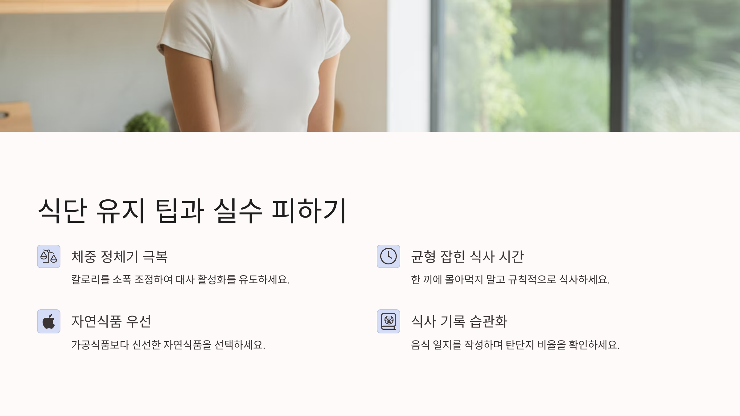또 하나의 팁은 미리 식단을 ‘주간 단위’로 계획하는 거예요. 아침에 뭘 먹을지 고민하는 시간도 줄고, 실패 확률도 낮아져요. 요리하기 귀찮은 날엔 닭가슴살, 삶은 달걀 같은 간단한 재료로 대체해도 충분해요.