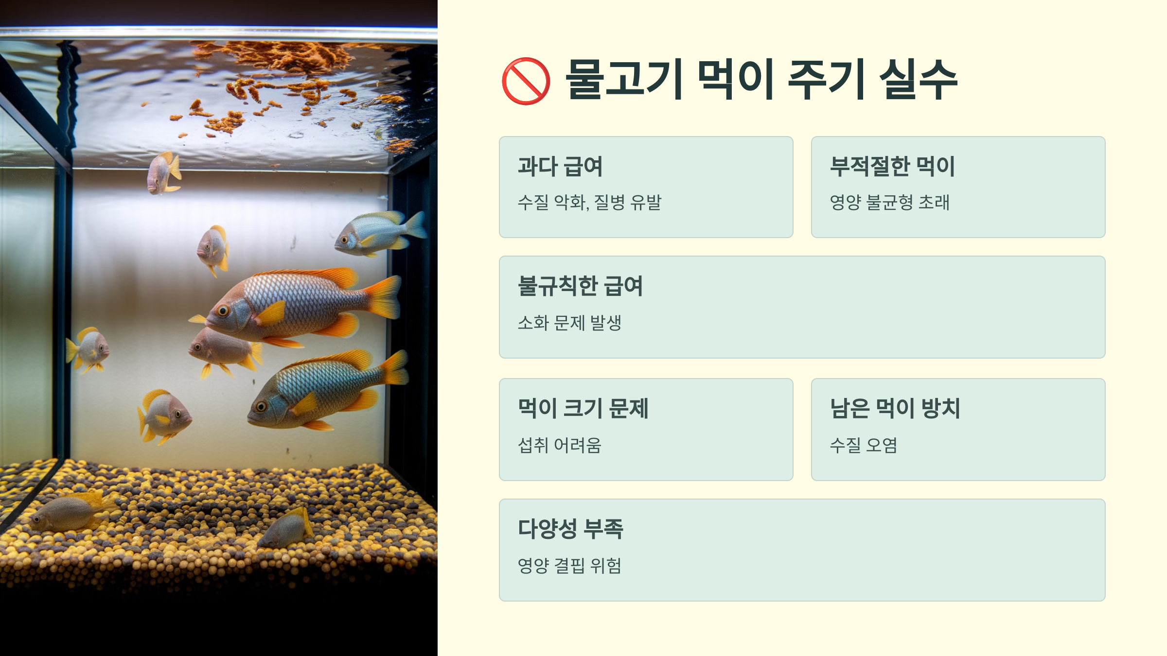 초보자들이 흔히 하는 먹이 주기 실수를 정리해볼게요. 이런 실수를 줄이면 물고기를 더 건강하게 키울 수 있어요.