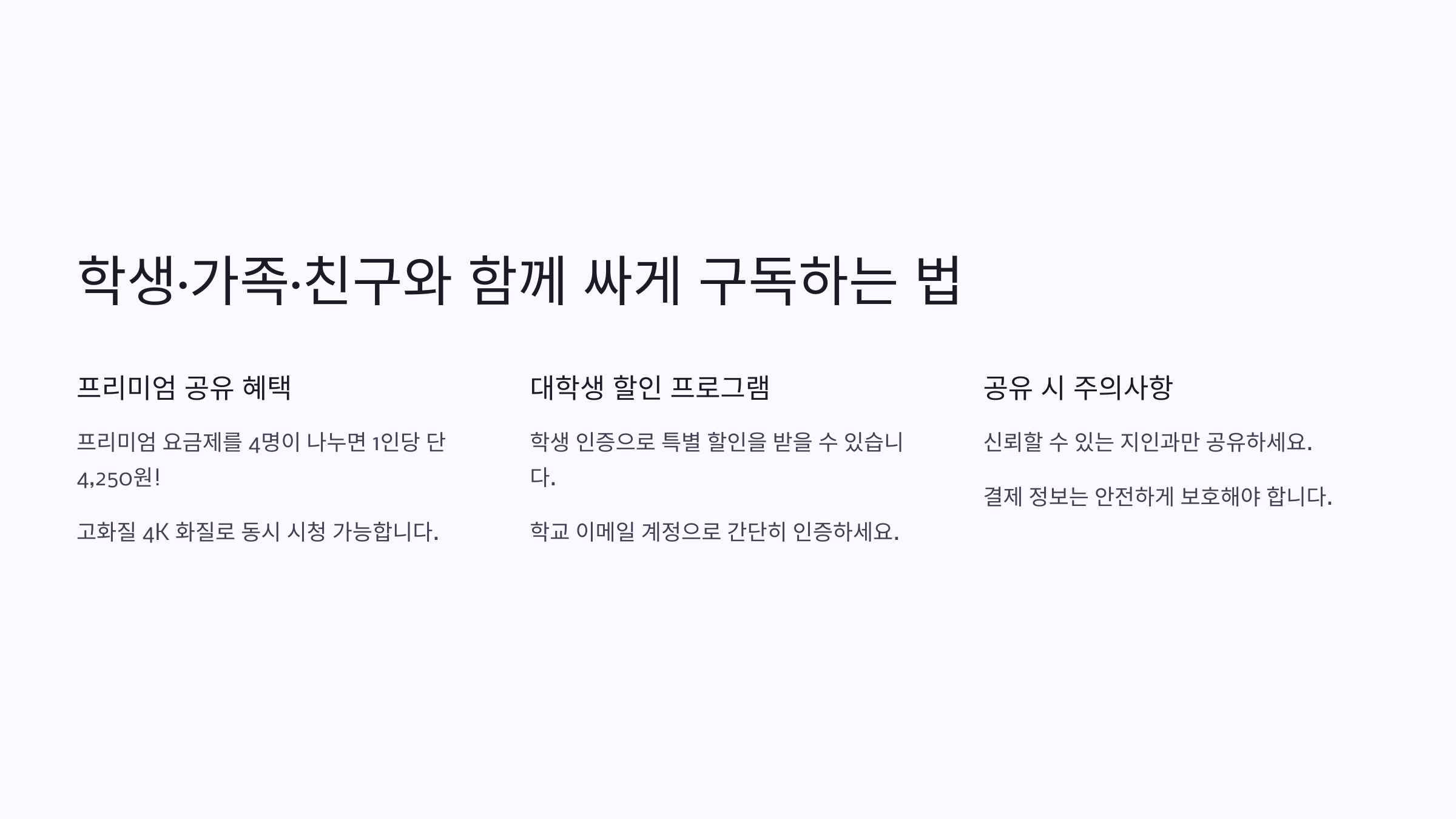 ✔ 학생·가족·친구와 함께 싸게 구독하는 법