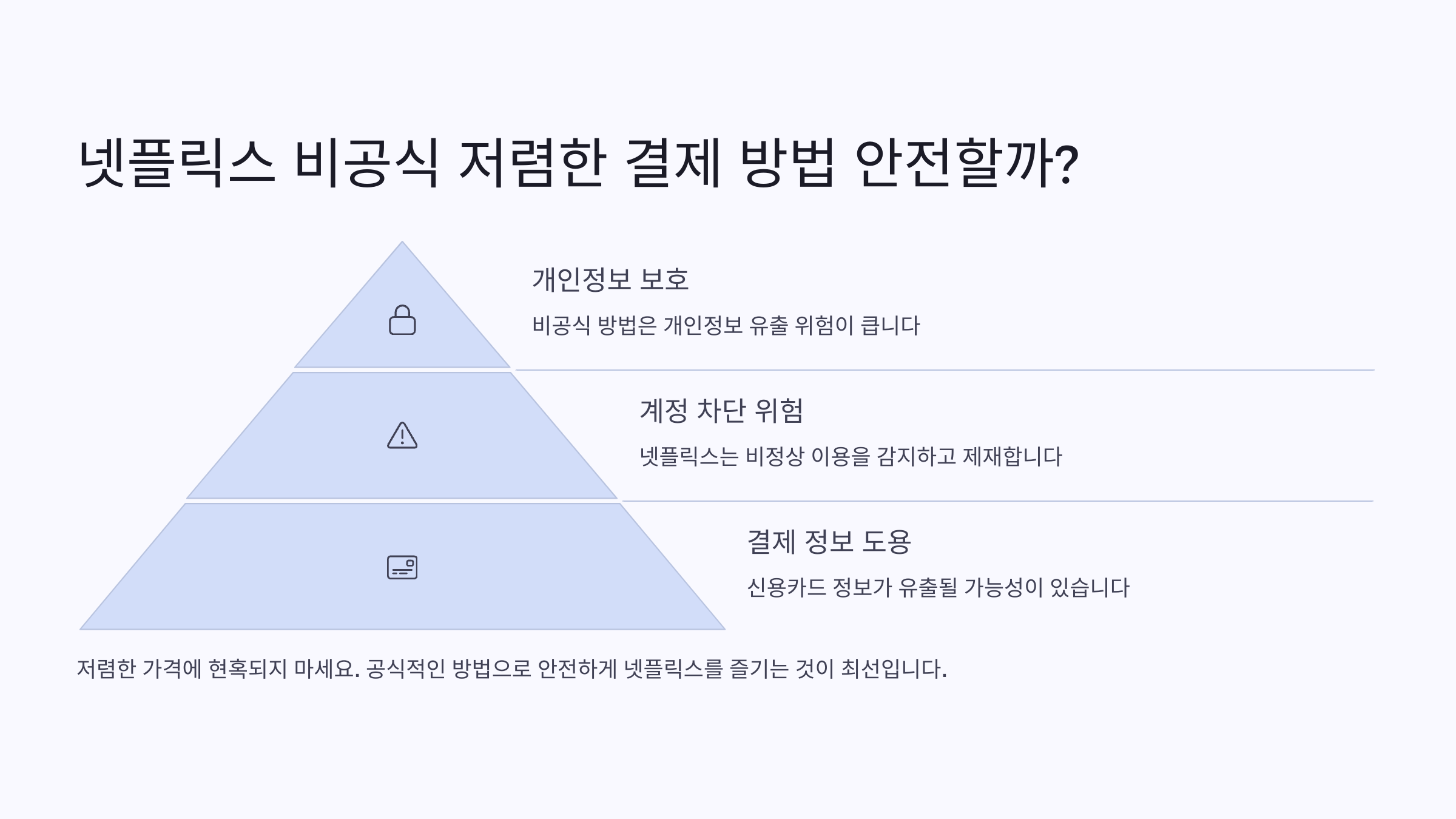 인터넷을 검색하다 보면 넷플릭스를 싸게 이용할 수 있는 비공식 결제 방법이 있다는 이야기를 종종 볼 수 있어요. 하지만 과연 안전할까요? 🤔
