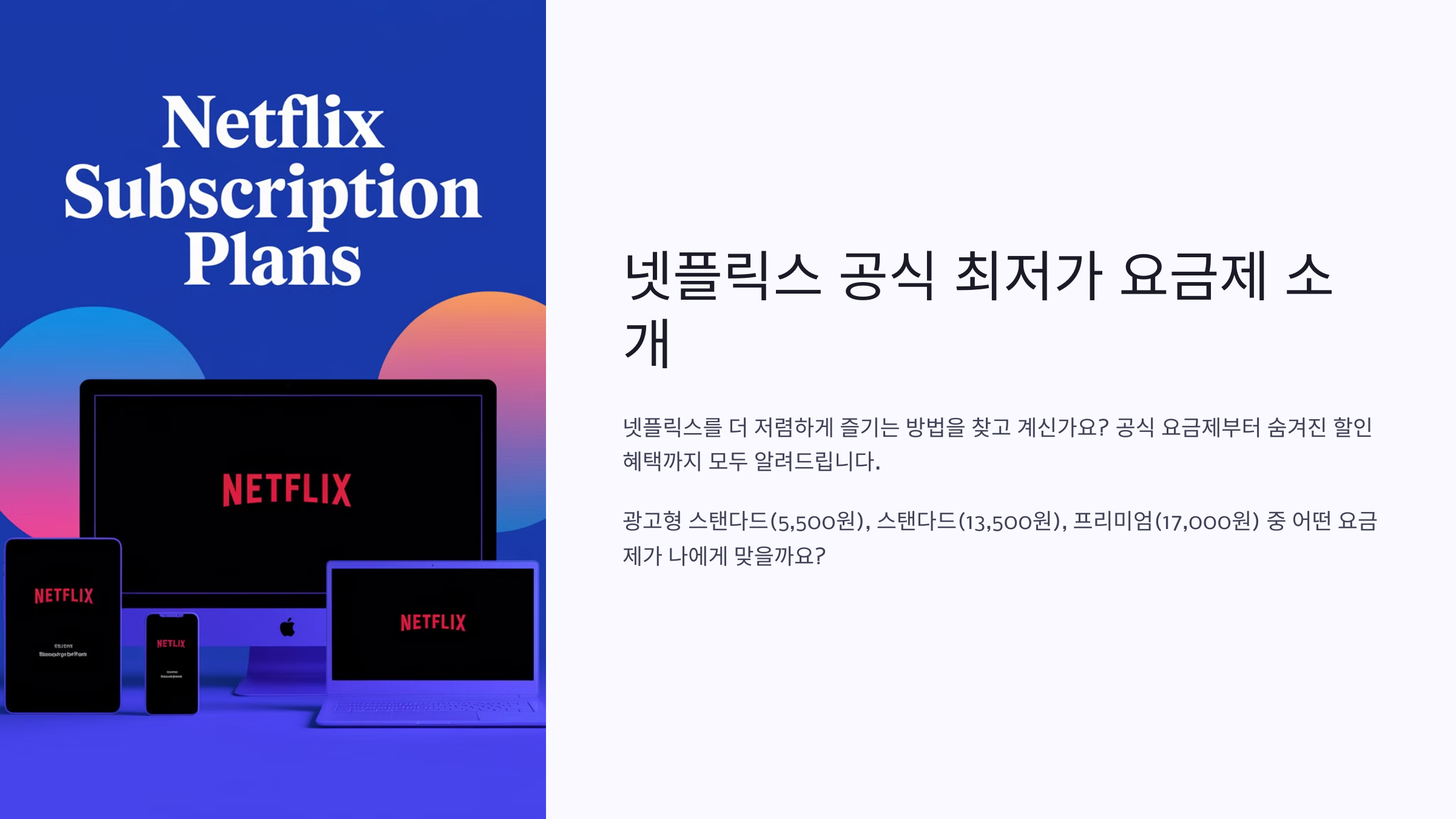 넷플릭스는 여러 가지 요금제를 제공하며, 국가마다 요금이 다르게 책정되어 있어요. 한국 기준으로는 광고형 베이식 요금제가 가장 저렴한 옵션이에요.