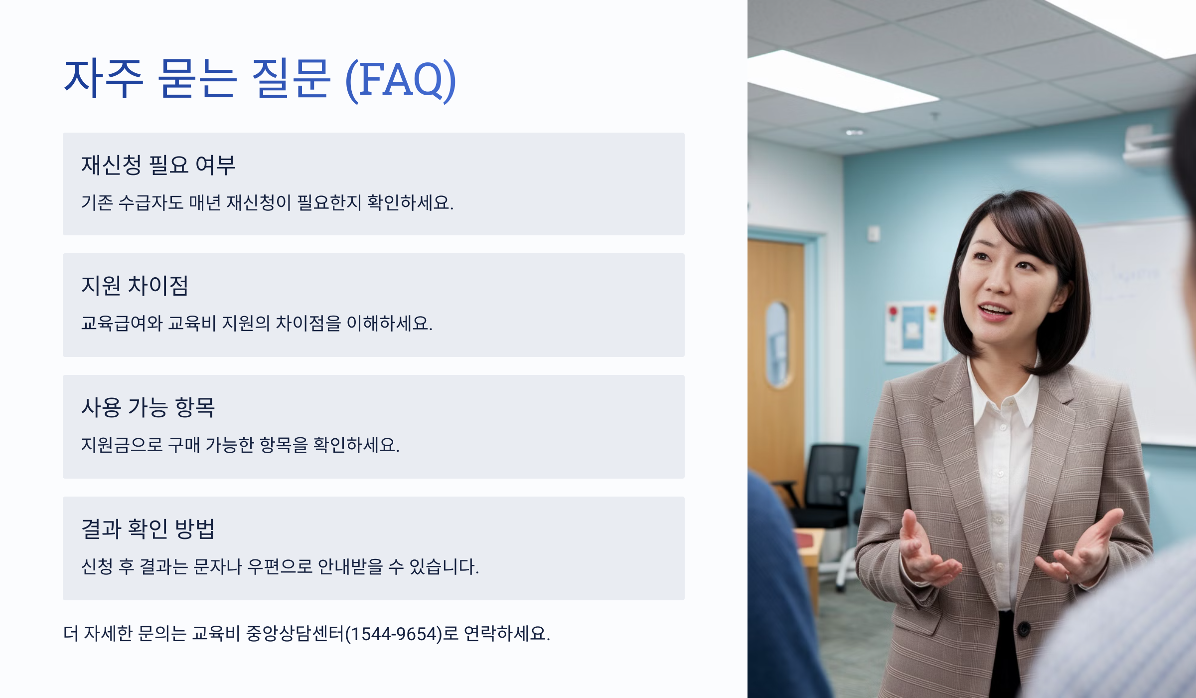 - ✅ 특수교육 대상 학생 지원 – 장애 학생을 위한 별도 교육 지원금 제공