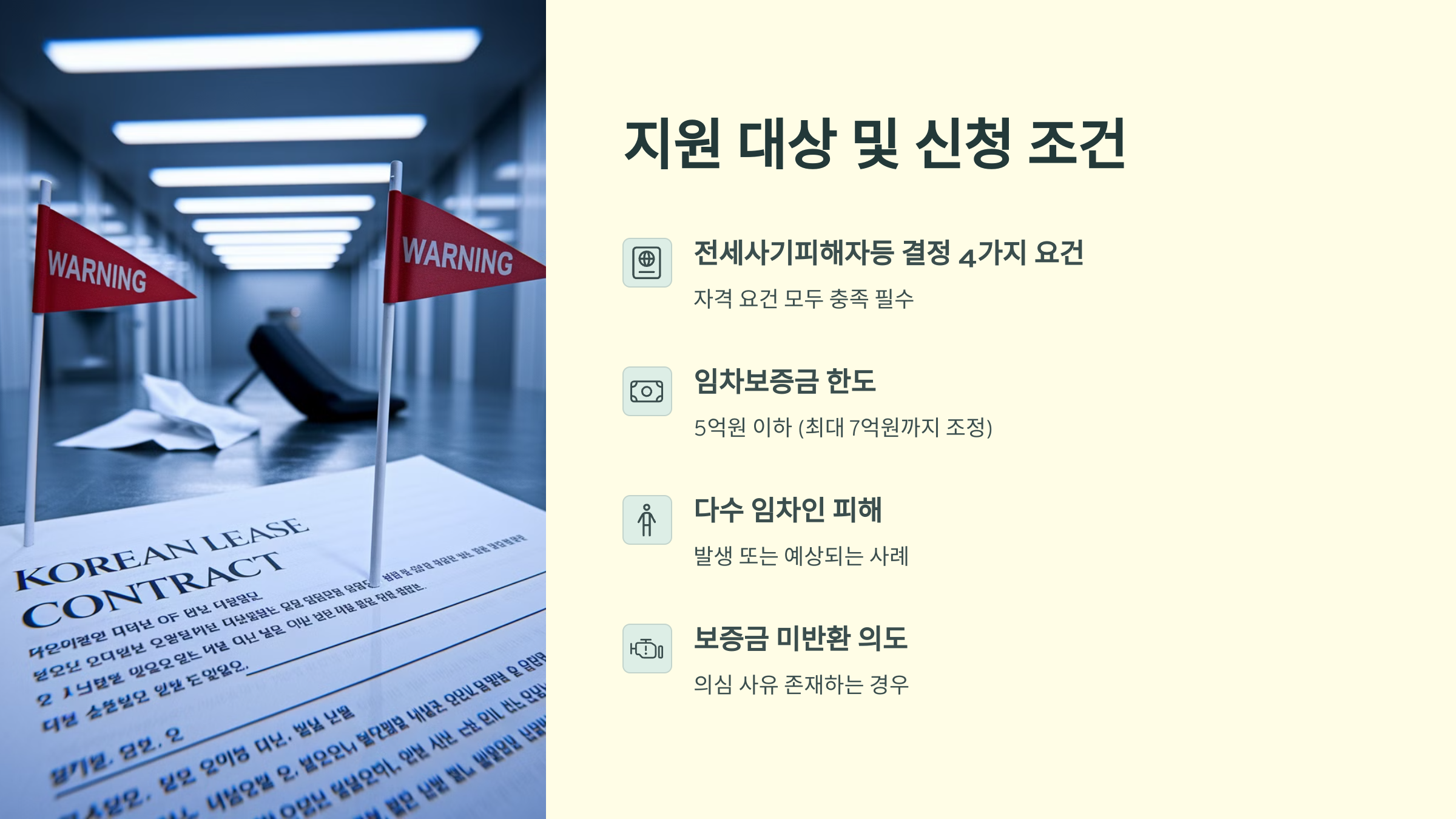 전세사기 피해자 지원금을 받기 위해서는 일정한 조건을 충족해야 해요. 정부에서 정한 기준에 맞는 피해자만 지원 대상이 될 수 있기 때문에, 본인이 지원 대상에 해당하는지 먼저 확인하는 것이 중요해요.