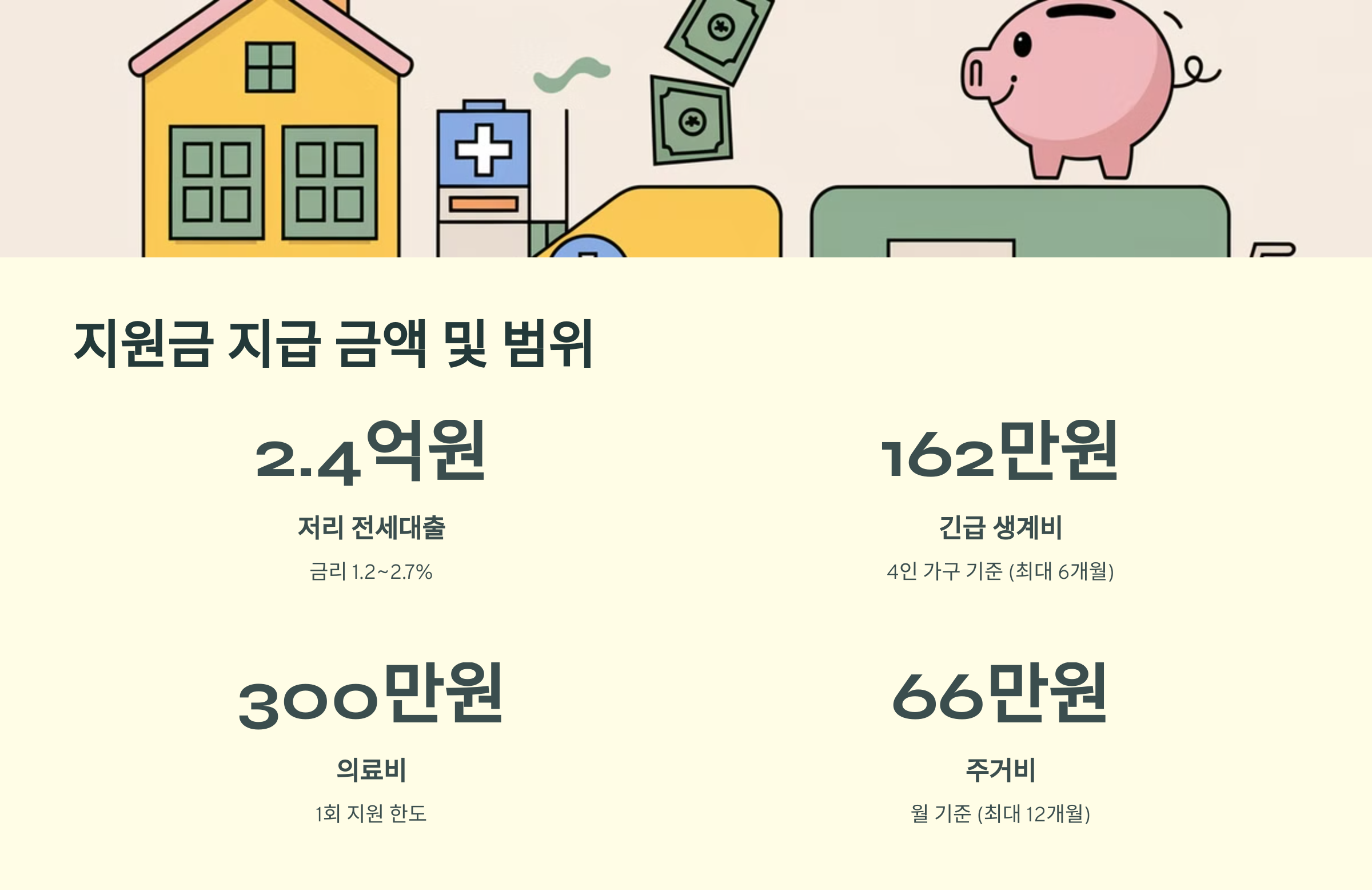 | 긴급 주거비 지원 | 한시적으로 주거비 보조금 지급 | 저소득층 피해자 |