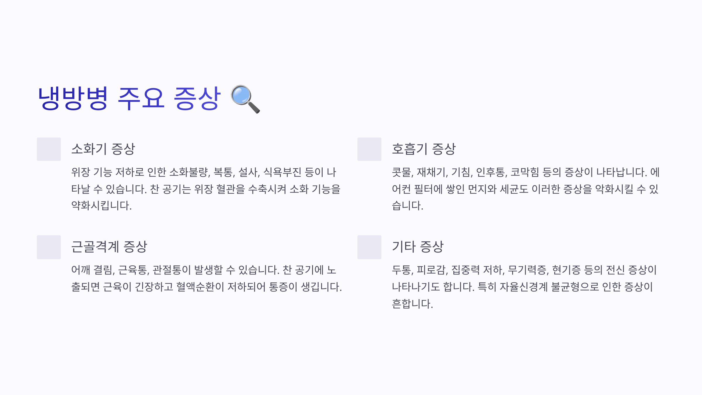 🧊 냉방병 증상 리스트 정리