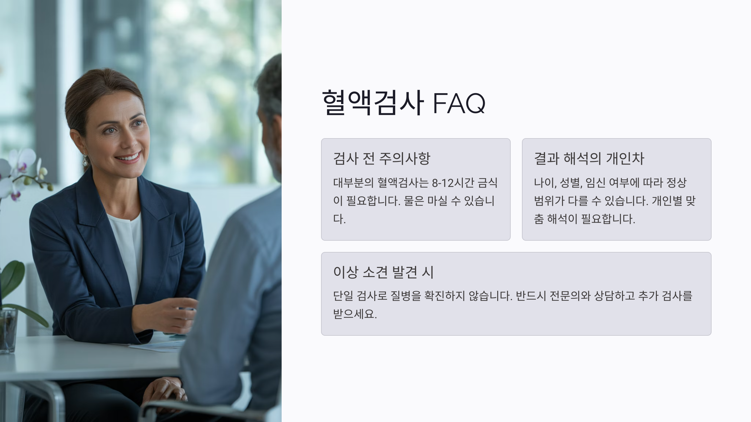 예를 들어 백혈구 수치가 증가했다면 감염이나 염증이 의심되고, 적혈구 수치가 낮다면 빈혈일 가능성이 있어요. 혈소판 수치가 낮아지면 출혈이 쉬워지는 상태일 수 있죠. 이런 방식으로 혈액검사는 건강 이상을 미리 파악할 수 있는 소중한 도구예요.