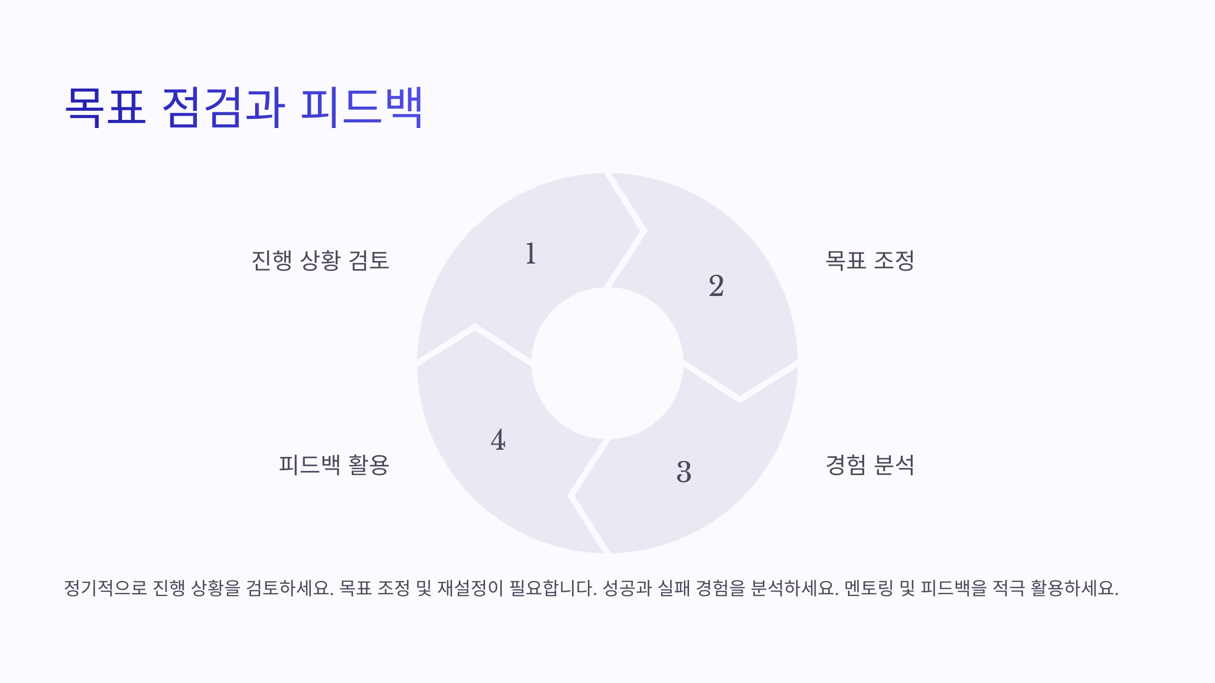 아무리 멋진 목표를 세워도 중간 점검과 피드백이 없다면 흐지부지 끝나버리기 쉬워요. 그래서 2025년에는 주기적인 체크가 정말 필요해요. 내가 잘하고 있는지, 혹시 방향을 틀어야 하는 건 아닌지 돌아보는 시간을 꼭 가져야 해요.