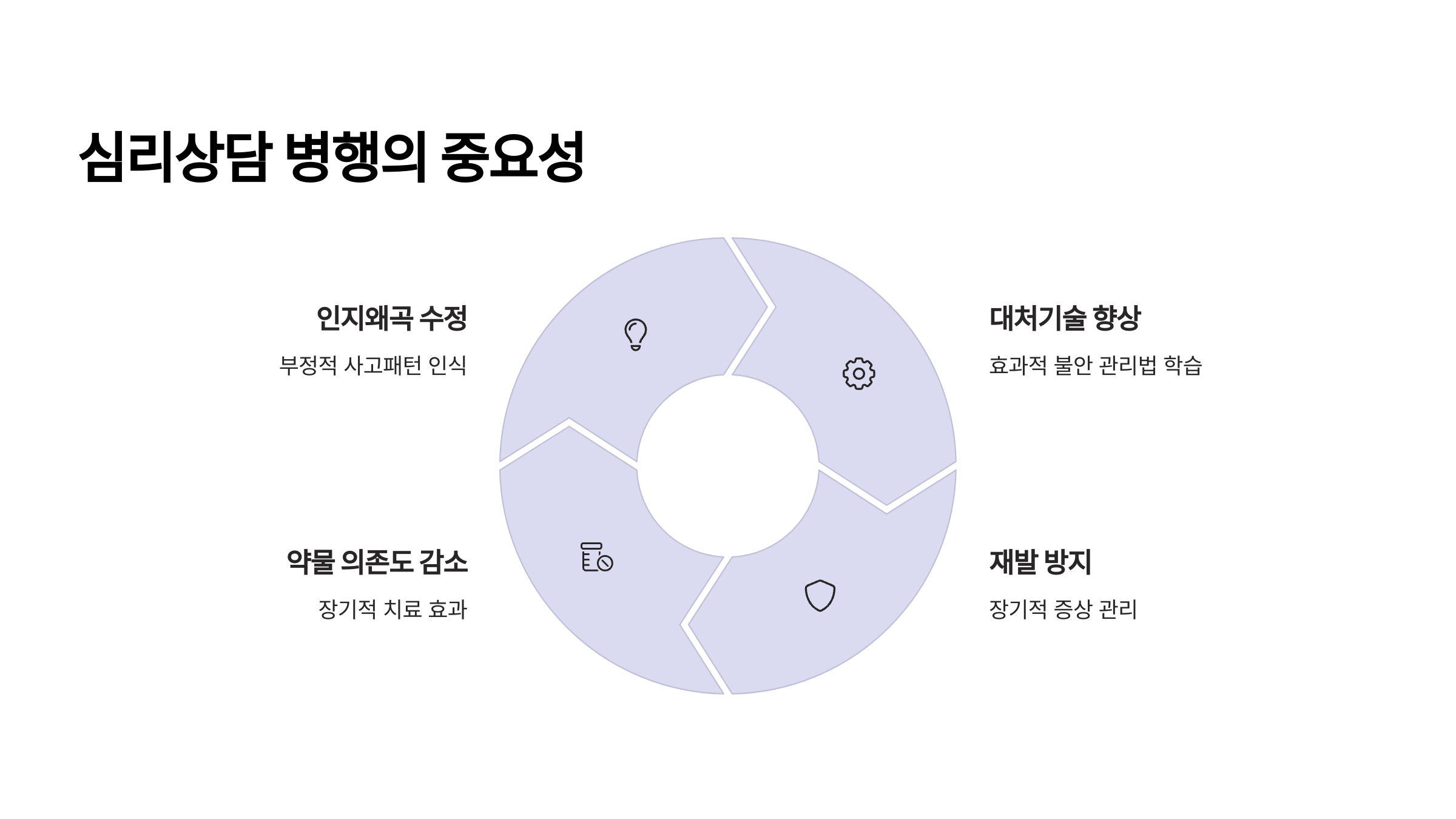 심리상담은 불안의 원인을 찾아내고, 생각과 감정의 흐름을 정리하는 데 큰 도움이 돼요. 치료 효과를 높이는 데 필수적이에요.