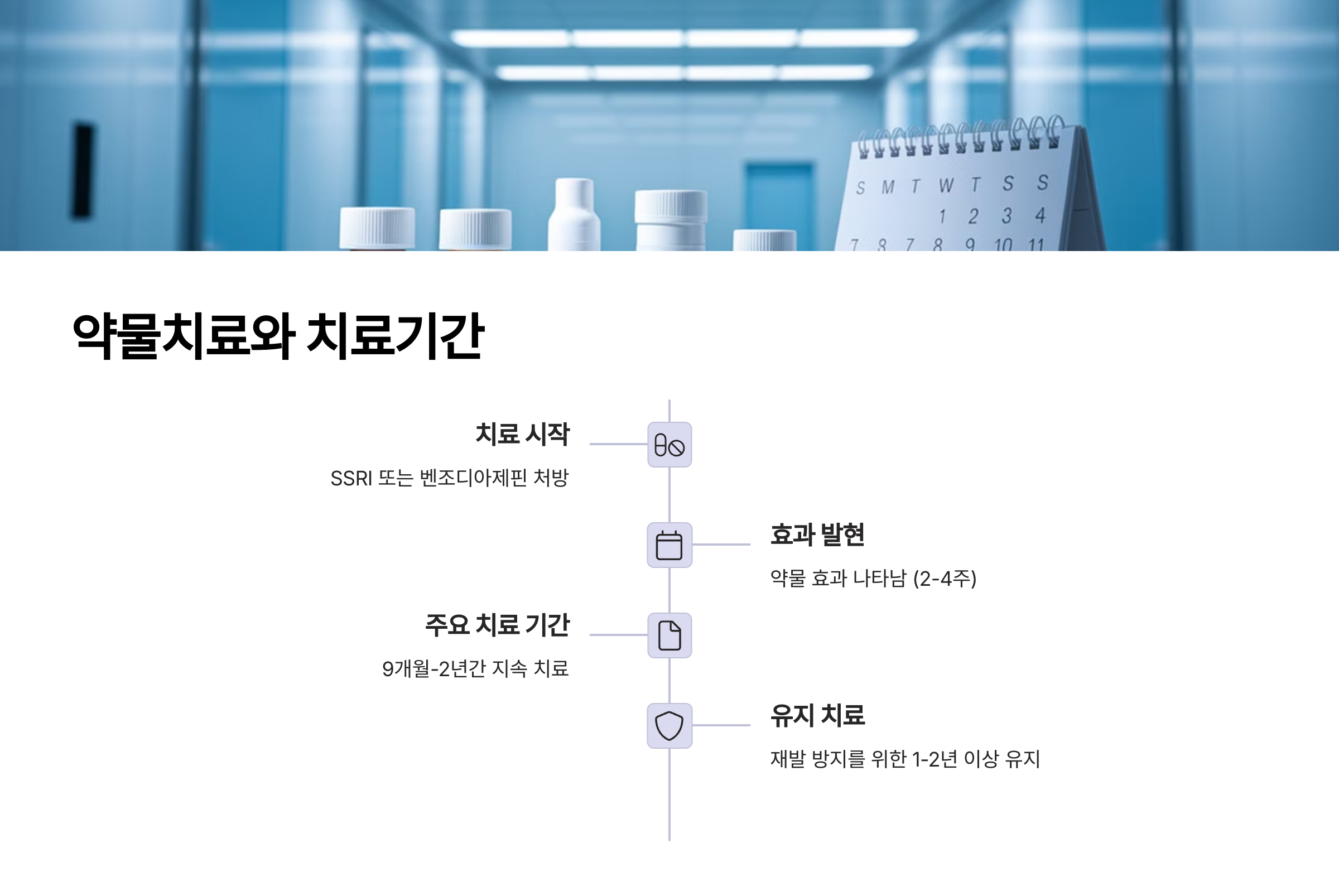 약물치료는 일반적으로 최소 6개월~1년 정도 복용해야 해요. 증상이 안정되면 서서히 줄이거나 중단할 수 있고, 복용 중에는 정기적으로 병원 진료를 보며 상태를 확인해야 해요.