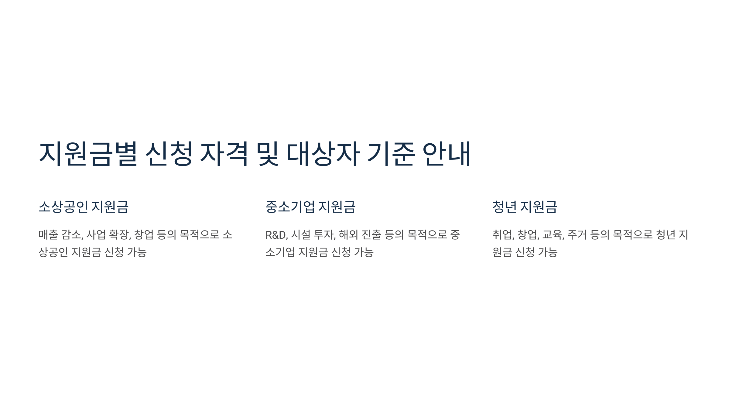 각 정부지원금마다 신청 대상과 자격 요건이 달라요. 본인이 받을 수 있는 혜택인지 꼭 확인해 보고 신청해야 해요!