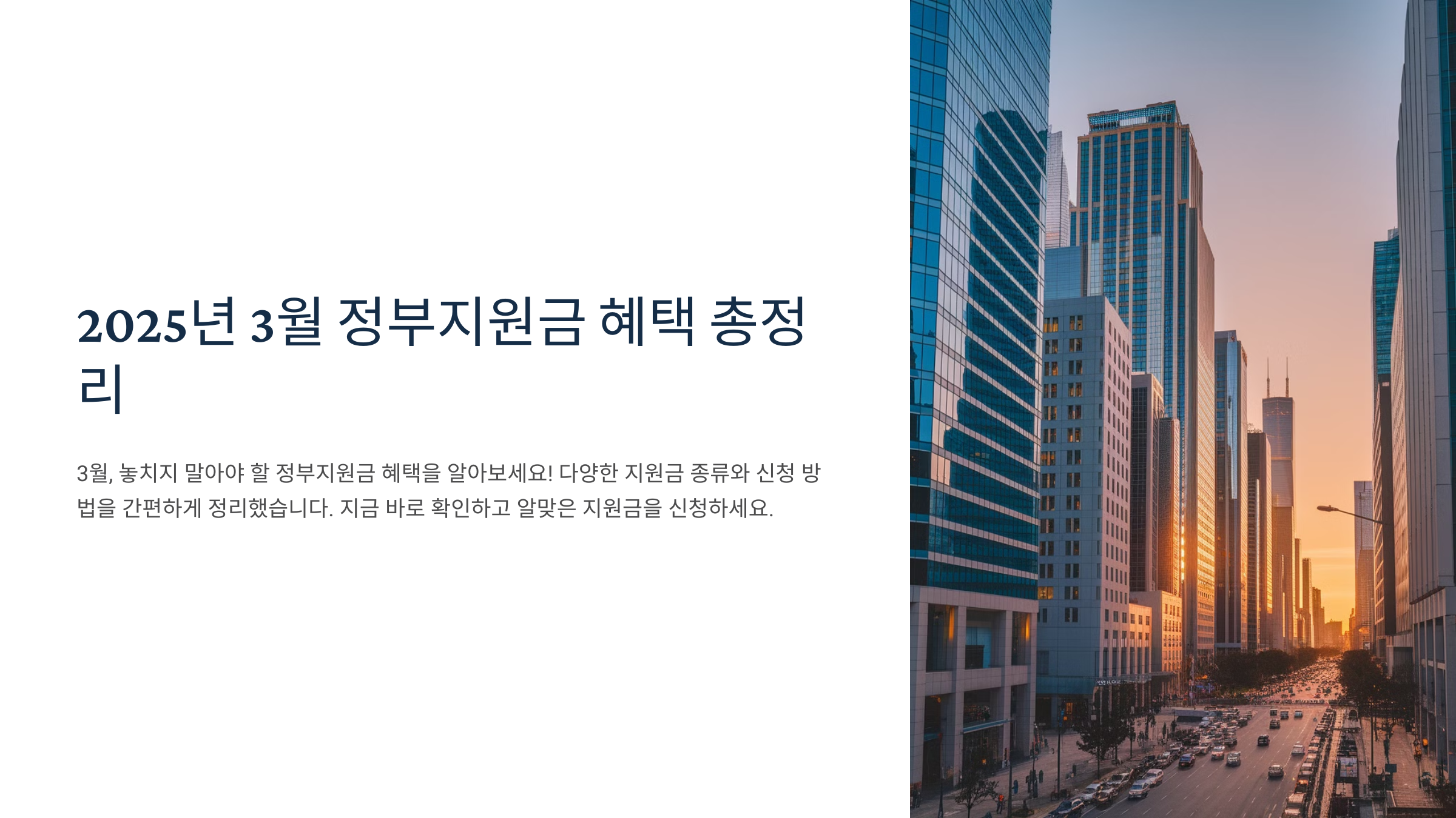 3월은 다양한 정부지원금 신청이 가능한 중요한 시기예요. 놓치면 손해 볼 수 있는 지원금들이 많으니, 꼼꼼하게 챙겨야 해요! 정부에서는 저소득층, 소상공인, 청년, 신혼부부 등을 위해 다양한 지원 프로그램을 운영하고 있답니다.