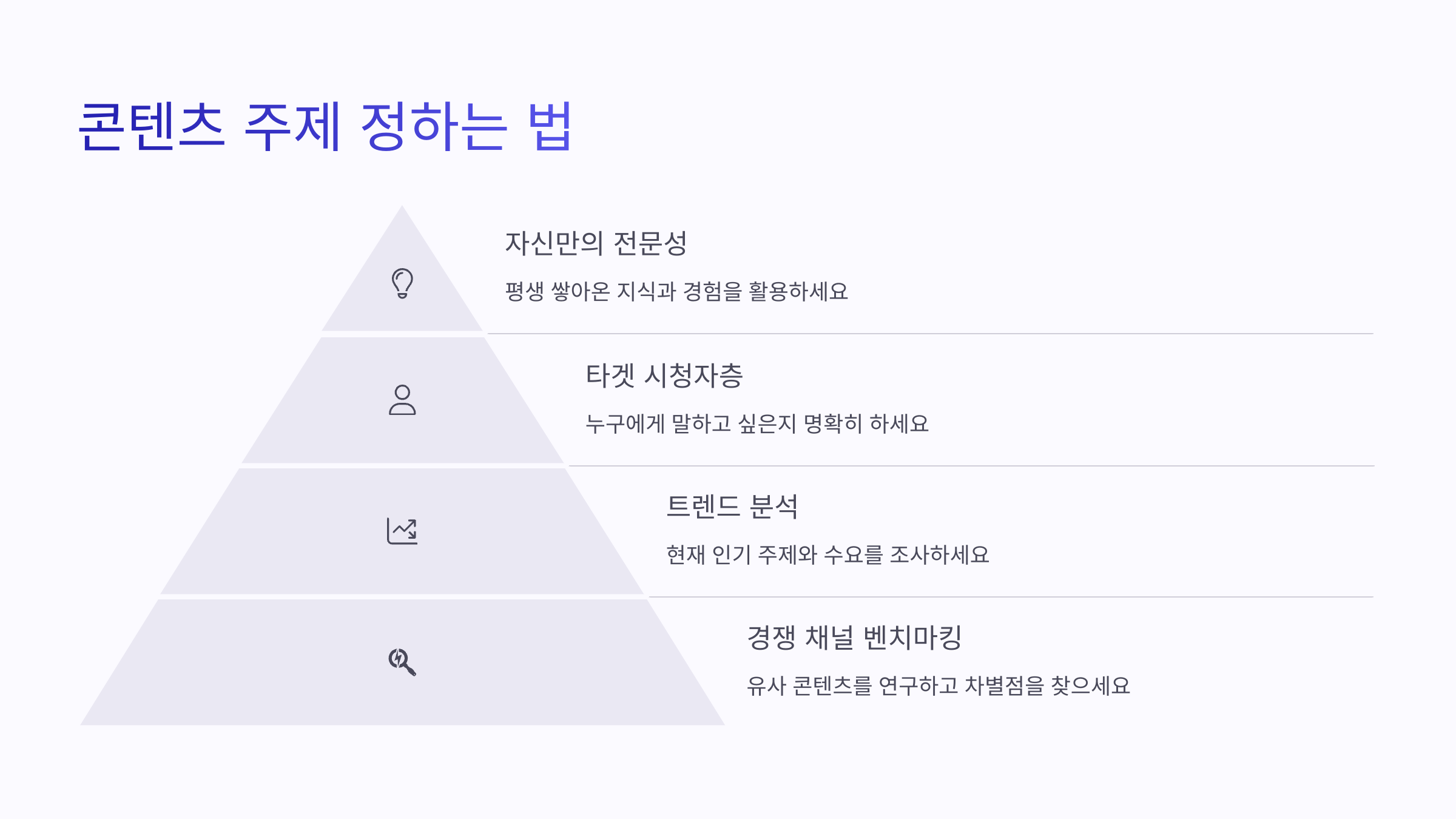 유튜브 주제는 절대 거창할 필요 없어요! 오히려 일상 속 평범한 이야기가 더 큰 공감을 얻어요. 예를 들어, “우리 동네 산책 브이로그”, “혼밥 요리”, “50대 건강관리” 이런 주제들도 인기 많아요.